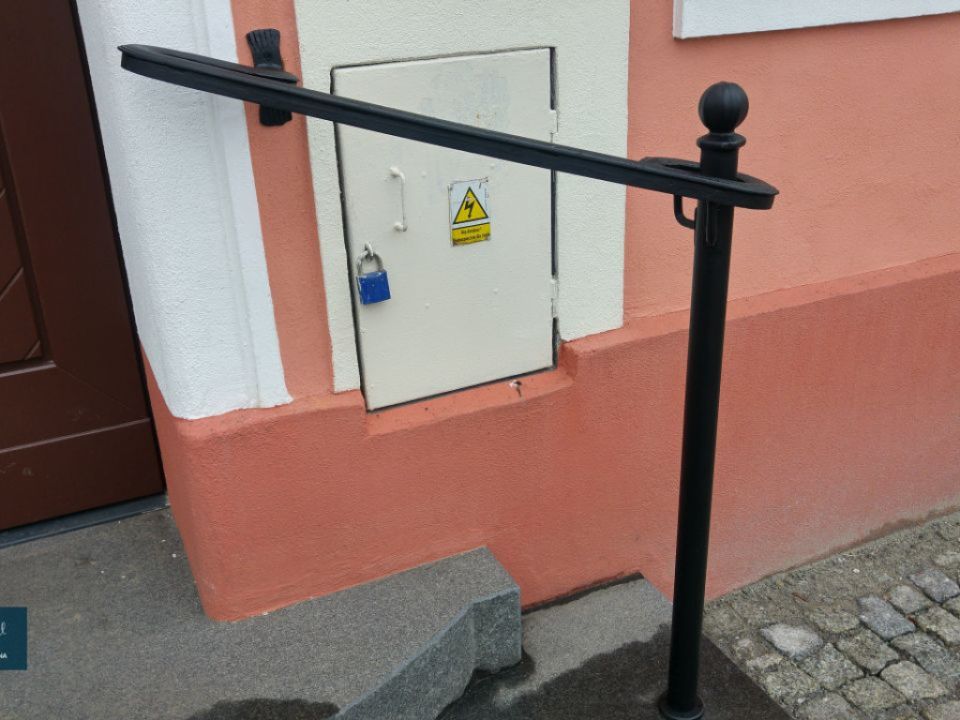 Poręcze przy wejściu Wiadomości 2016-12-16 Przy schodach do Urzędu Miasta i Gminy pojawiły się poręcze. Zostały zamontowane w celu ułatwienia, zwłaszcza starszym interesantom, wejście do budynku.