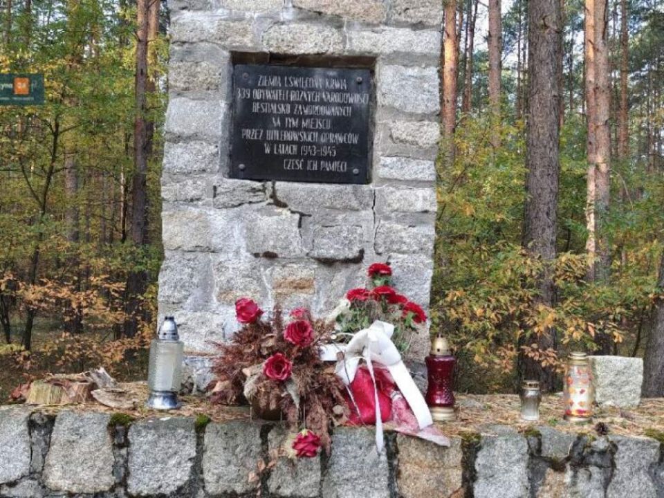 W lesie pod Rydzyną, pomiędzy drogą wojewódzką 309 a torami kolejowymi Leszno – Wrocław znajduje się pomnik upamiętniający miejsce największej zbrodni niemieckiej dokonanej w regionie leszczyńskim. W czasie II wojny św. hitlerowcy zamordowali w tym miejscu co najmniej 339 obywateli różnych narodowości, przede wszystkim jednak mieszkańców Leszna i Powiatu Leszczyńskiego. W 1958 r. w kilku miejscach lasu dokonano ekshumacji i ciała przeniesiono do mogiły przy cmentarzu w Lesznie. Nie są to zapewne jedyne miejsca mordów i jest wielce prawdopodobne, że również w innych częściach lasu spoczywa wiele ofiar nazistowskiego terroru. Później w miejscu trzech zbiorowych mogił postawiono pomnik, przy którym odbywały się okolicznościowe uroczystości. Z czasem miejsce stało się zapomniane, zaniedbane i trudne do znalezienia. W 2009 roku strażacy-ochotnicy Mariusz Walkowiak z Rydzyny oraz Marek Rybiński z Dąbcza zmobilizowali miejscowe jednostki OSP i rozpoczęli akcję sprzątania terenu wokół pomnika. Jest z nimi również jedyny pamiętający tamte wydarzenia, urodzony przed wojną Janusz Rybiński z Dąbcza, który od wielu lat interesuje się tym miejscem i wspiera działania mające na celu zachowanie pamięci o pomordowanych. Do działania włączyli się samorządowy powiatu i gminy, którzy także pomagają w pracach porządkowych. Akcja powtarzana jest co roku przed Świętem Zmarłych. Jej organizatorami są Mariusz Walkowiak,  Kornel Malcherek, Radosław Buchwald i Marek Rybiński. Pod pomnikiem również w tym roku został złożony okoliczny wieniec i zapalony znicz. W sprzątanie włączyli się w tym roku strażacy jednostek OSP z gminy Rydzyna, OSP Dąbcze, harcerze z 10 drużyny „Włóczykije”, burmistrz Kornel Malcherek. W lasach rydzyńskim i dąbieckim mordów dokonywano już od pierwszych tygodni okupacji niemieckiej. Z leszczyńskiego więzienia sądowego przy Placu Kościuszki (wówczas Hindenburg Platz), najczęściej w nocy, ciężarówkami przewożono po 15-20 więźniów. Nie zachowała się żadna ewidencja rozstrzeliwanych, nie sporządzano aktów zgonów. Ci ludzie mieli zniknąć bez śladu, zginąć bez udowodnienia jakiegoś przewinienia i oficjalnego wyroku. Stąd niewiele ofiar można dziś zidentyfikować z imienia i nazwiska. Odtwarzana po wojnie dokumentacja jest szczątkowa i nieprecyzyjna. Wiemy jednak, że wśród 40 zakładników z więzienia w Lesznie rozstrzelanych w październiku 1939 r. był 32-letni Stanisław Wojciechowski z Leszna. Podczas egzekucji 8 listopada 1939 r. życie stracili m.in. dwaj mieszkańcy Leszna Teofil Neuman (lat 37) i Ignacy Wolniewicz. W dniu 28 listopada zginął Maksymilian Cholewa z Grodziska pow. leszczyński. W listopadzie 1939 r. zamordowani zostali również m.in.: Marian Karolewski z Rydzyny (lat 27) i Wojciech Ratajczak z Krzemieniewa (lat 57). Spośród tych, którzy znaleźli się w leśnych grobach do końca 1939 r. znani są z imienia i nazwiska: Jan Matuszak (lat 52), Wiktor Grycz (lat 49), Antoni Konopka (lat 26), Ludwik Orzałkiewicz (lat 46), Feliks Poloszyk (lat 42), Franciszek Wojtkowiak (lat 44), Józef Wolniewicz (lat 37) i Józef Pabich (wszyscy z Leszna) oraz Franciszek Orzałkiewicz z Gronowa (lat 40), Marian Gbiorczyk z Kątów (lat 17) i Franciszek Piotrowski z Kleszczewa. W styczniu 1940 r. śmierć ponieśli tam wśród wielu innych: Ignacy Lewandowski (lat 35) i Stanisław Kasperski (lat 19), obaj z Leszna. W lutym zginął kolejny mieszkaniec Leszna Ignacy Wojdowski (lat 28) oraz Feliks Cichoszewski (lat 22) z Popowa pow. leszczyński. Nie ustalono dokładnych dat zamordowania w 1940 roku leszczynian: Franciszka Frąckowiaka (lat 51) i Karola Majewskiego (lat 41). Znane są co najmniej dwa przypadki szczęśliwie ocalałych z pogromów. Nocą 9 listopada 1939 r., wśród 15 więźniów wywiezionych z leszczyńskiego więzienia do rydzyńskich lasów był Czesław Fabiańczyk, mieszkaniec Ziemnic w gminie Osieczna. W lesie polecono im zejść z samochodu i ustawić się w piątki, trzymając się za ręce. Fabiańczyk był w ostatniej piątce. Przy jej formowaniu ociągał się udając, że robi coś przy bucie. W pewnym momencie skoczył w gęsty las i choć ranny w rękę, zdołał uciec i w ukryciu przeżyć wojnę. Drugim był rolnik z Leszna Antoni Majorek, który od egzekucyjnej salwy został jedynie ranny i po odejściu zbrodniarzy zdołał wydostać się z dołu śmierci spod innych ofiar. Życie zawdzięczał spóźnieniu się na miejsce stracenia grabarzy, którzy mieli przysypać mogiłę. 24 kwietnia 1966 r. w miejscu masowym grobów uroczyście odsłonięto pomnik.