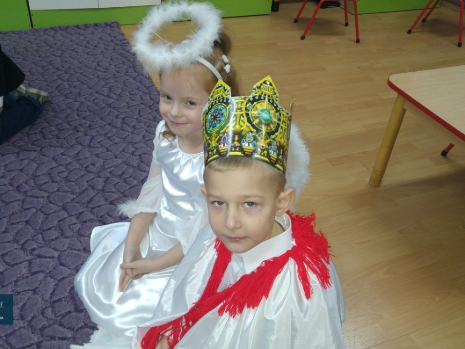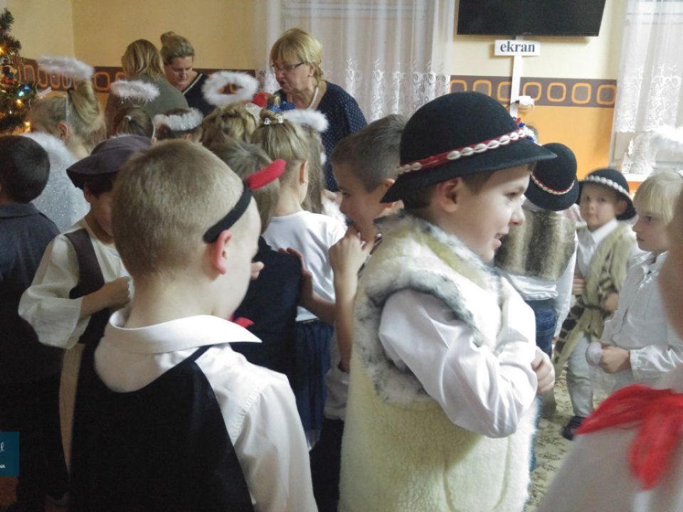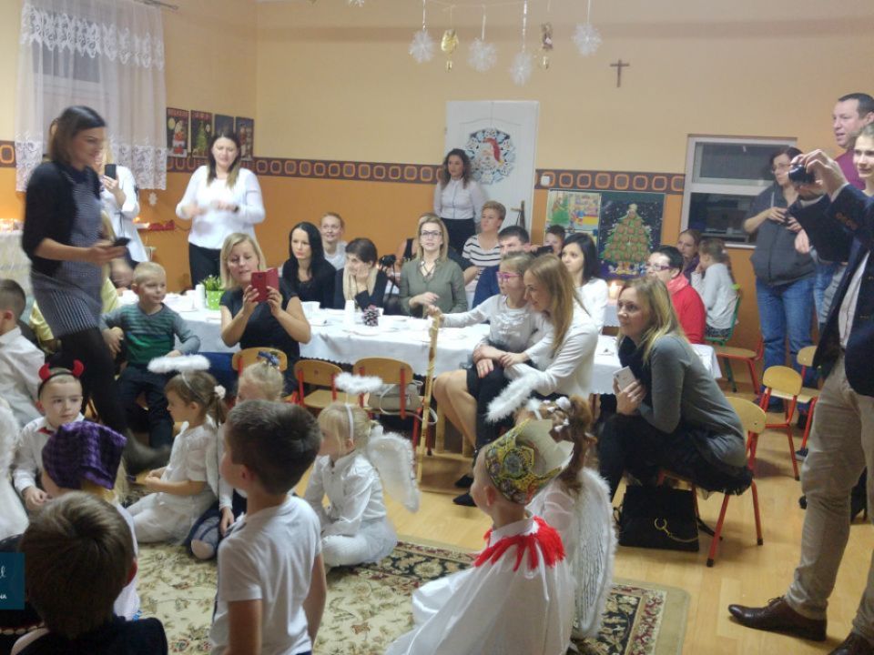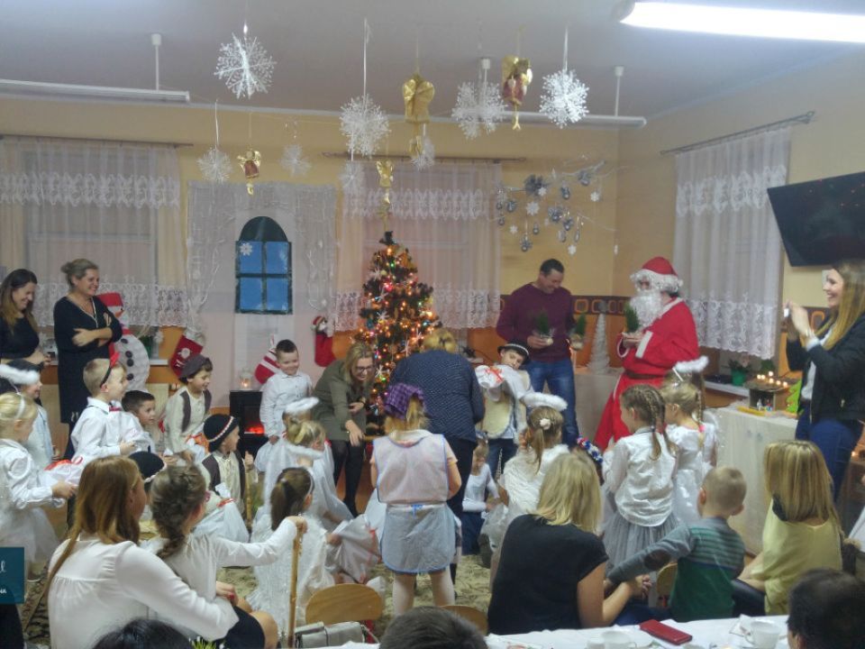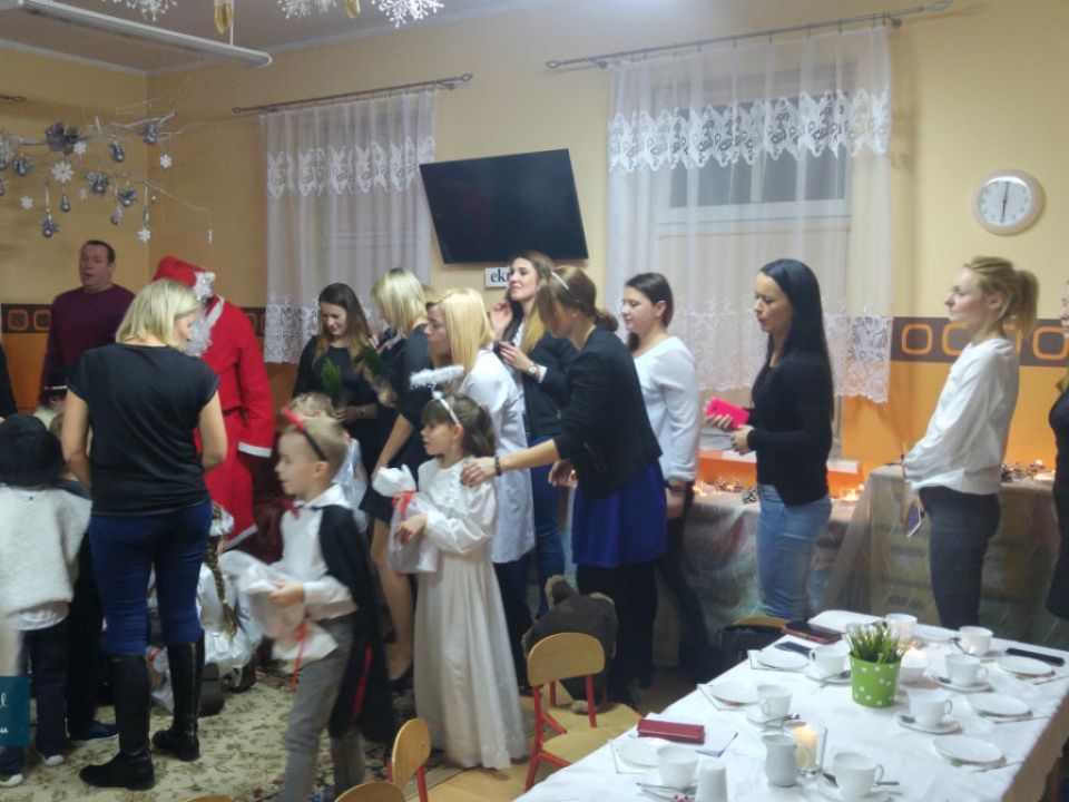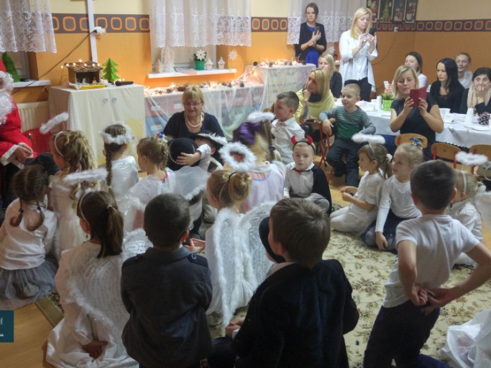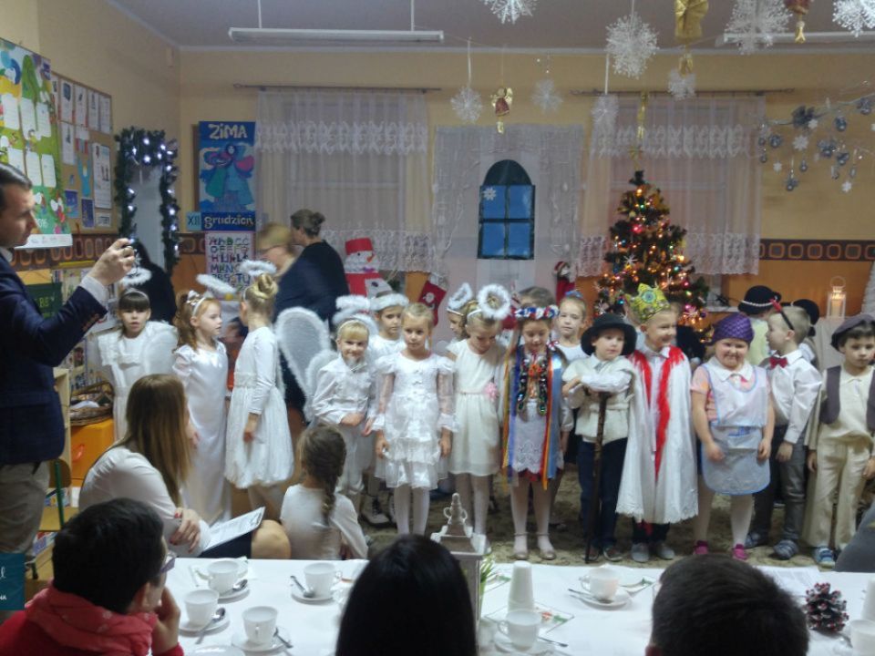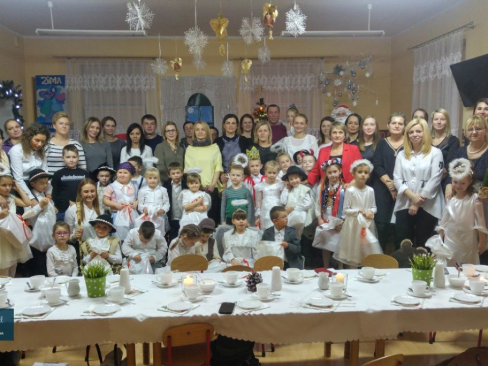 Wystrój sali, zapach  świerkowych gałązek  oraz  świątecznych pieników - pieczonych i  zdobionych przez dzieci,  melodie i wspólne śpiewanie kolęd,  dzielenie opłatkiem sprawiły, że wszystkim udzielił się ten "magiczny" świąteczny  nastrój. Po występie na wszystkie dzieci czekał  Gwiazdor, upominki  oraz słodki poczęstunek . Było uroczyście,  kolorowo i świątecznie.