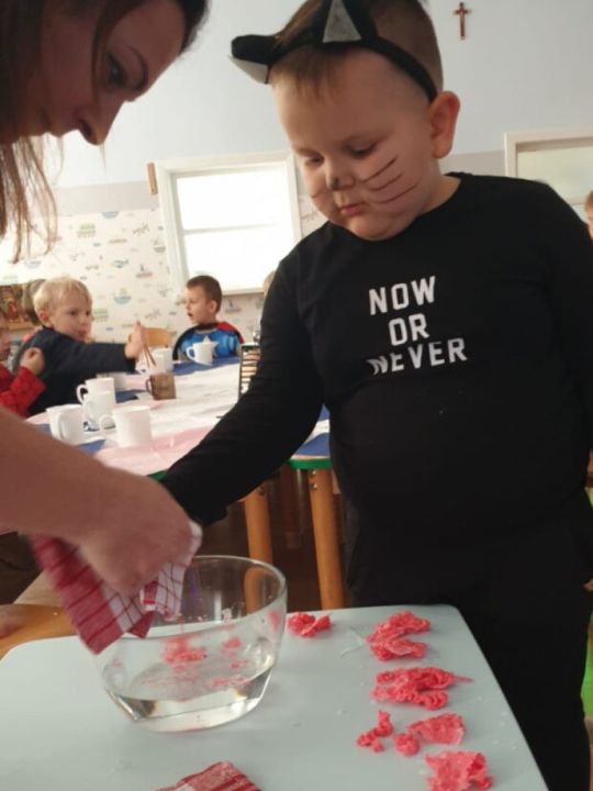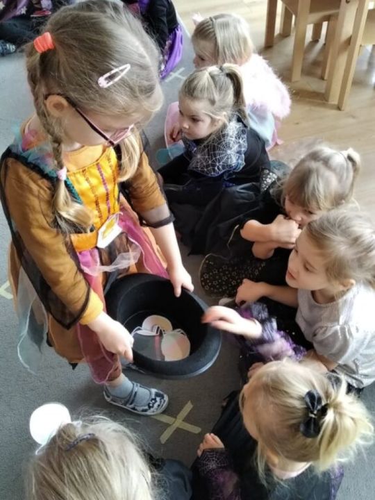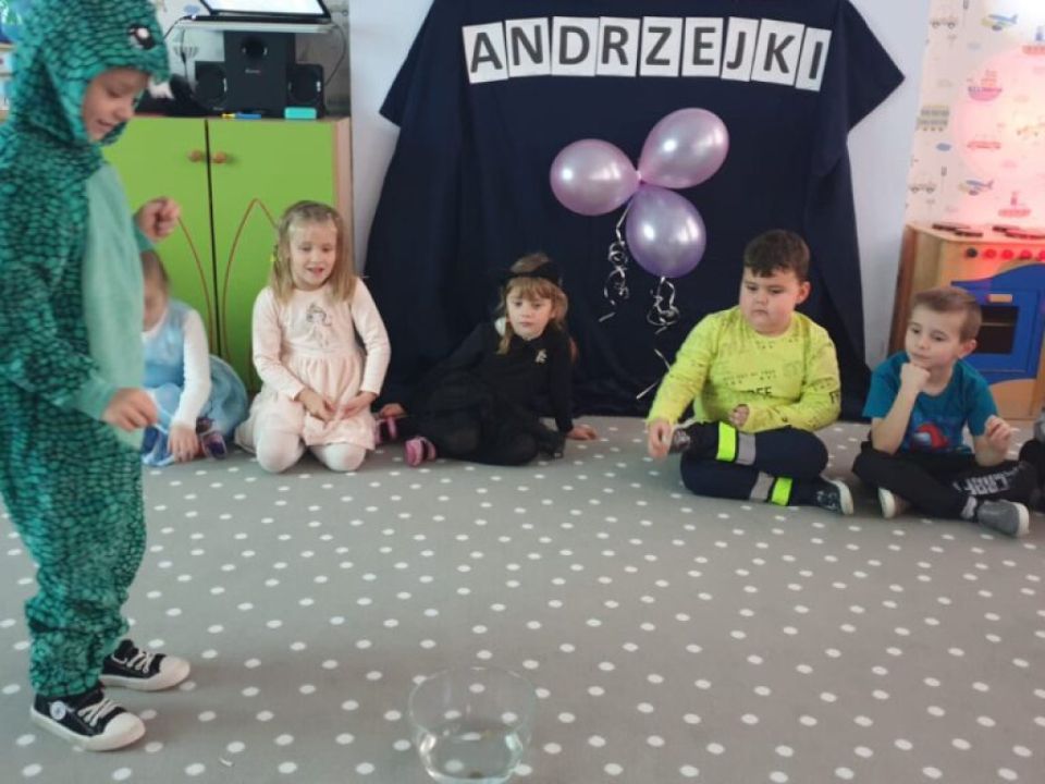 Dzieci przebrały się za wróżki, kotki itp. postacie. Wychowawczynie przygotowały dla swoich podopiecznych rozmaite wróżby: lanie wosku, wędrujące buty, zaczarowane kubeczki, serca z imionami czy też wróżby z monetą.