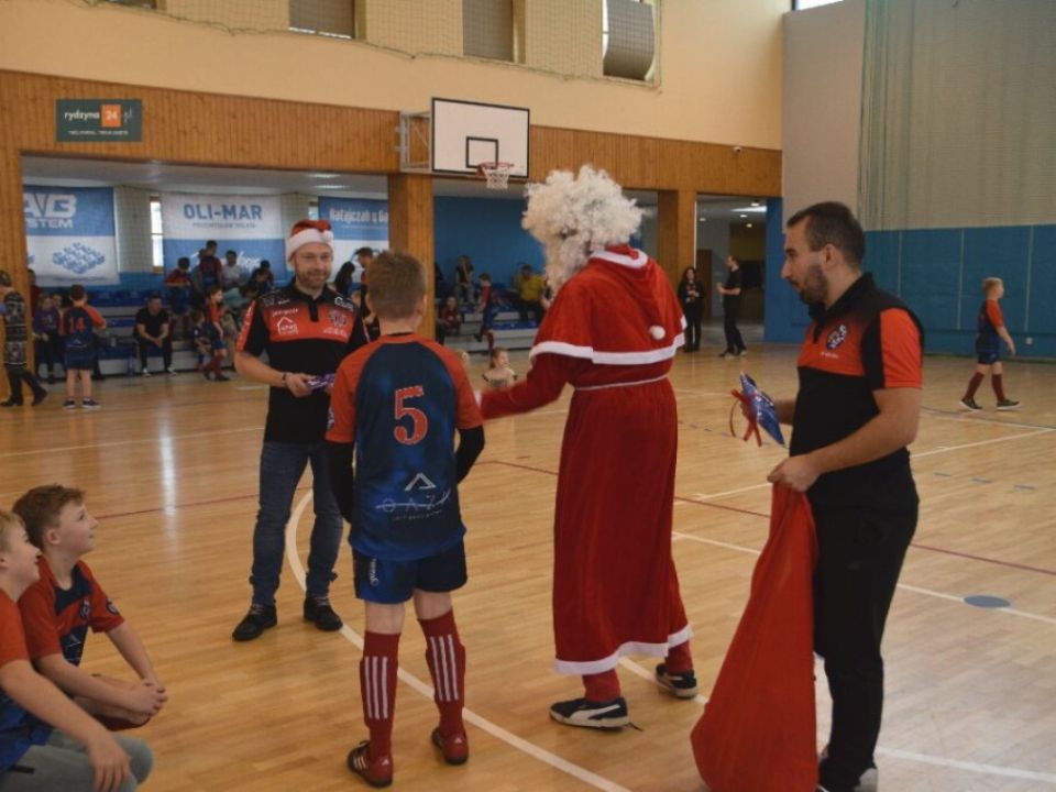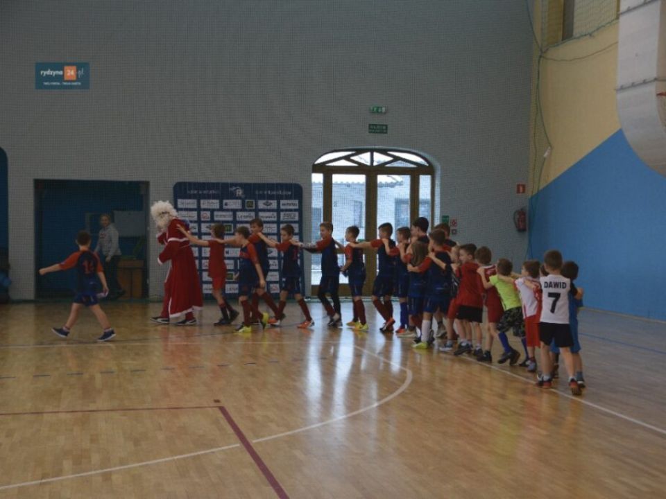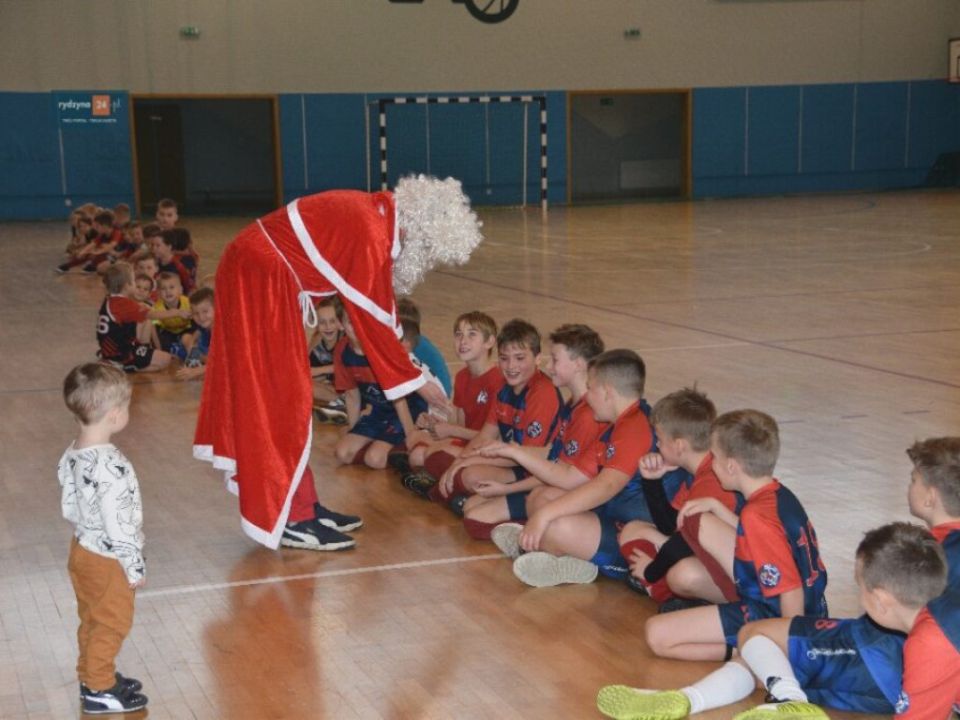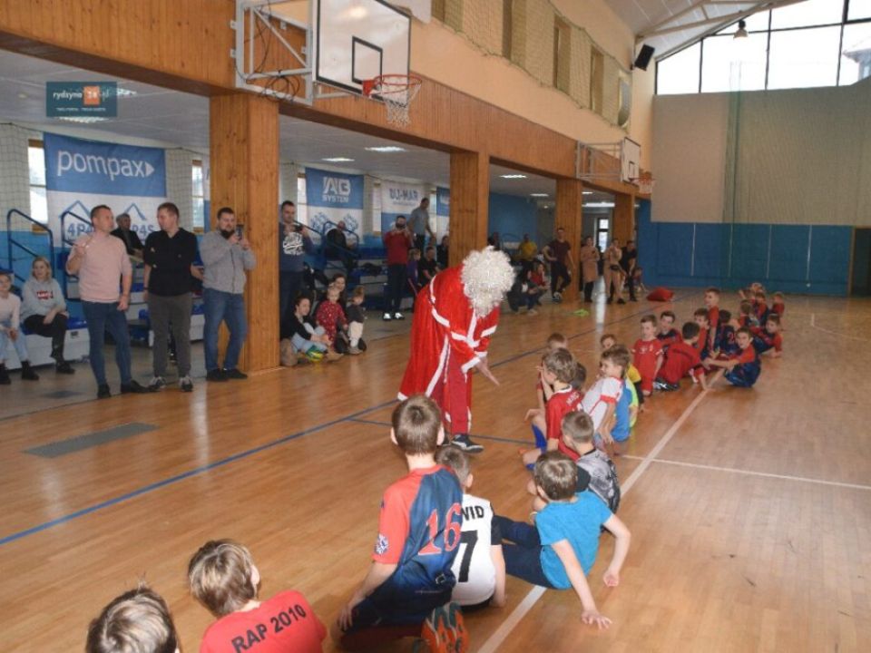 Święta coraz bliżej wiec Rydzyńska Akademia Piłkarska RAP2010 zorganizowała dla swoich podopiecznych Mikołajki. Jak przystało na tradycję nie mogło zabraknąć prezentów i samego Mikołaja ale również emocji piłkarskich.