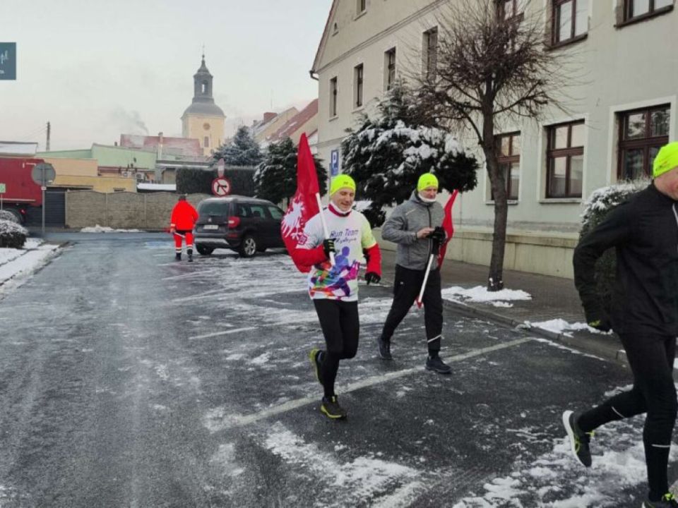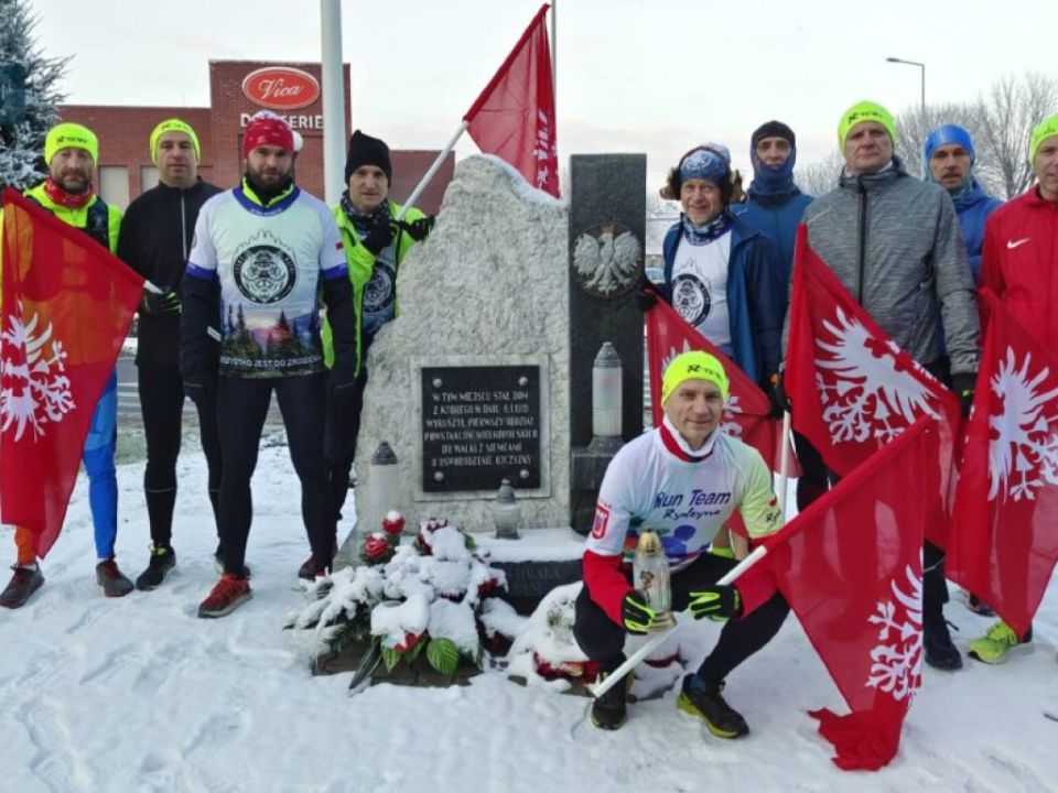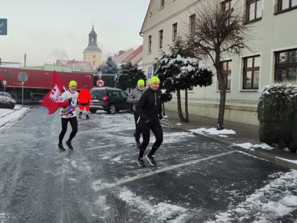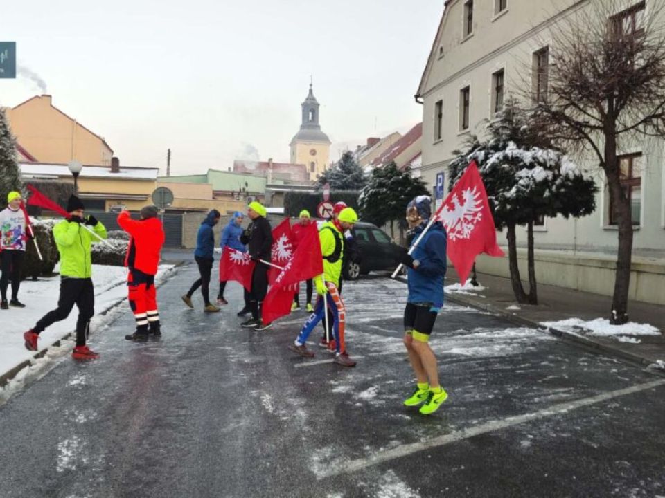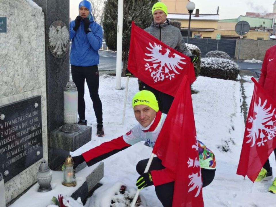 Zanim rozpoczęli bieg w Miejskiej Górce oddali hołd i zapalili znicz pod tablicą upamiętniającą miejsce w którym stał dom z którego wyruszył pierwszy oddział powstańców wielkopolskich do walki z Niemcami.