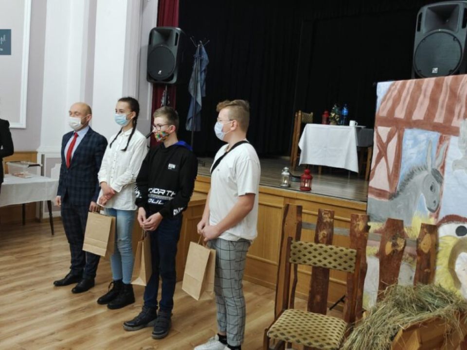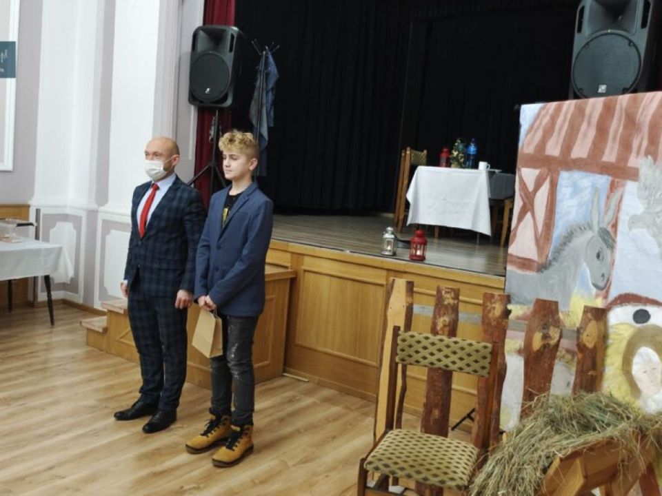 13 grudnia 2021 roku w Rydzyńskim Ośrodku Kultury, odbyło się podsumowanie konkursu plastycznego „BOŻE NARODZENIE W MOICH OCZACH”. Wydarzenie uświetnił występ uczniów ze Specjalnego Ośrodka Szkolno Wychowawczego. Młodzież przygotowała program artystyczny pod opieką pań Beaty i Lidki oraz panów Marcina i i Sławka, którzy stanęli na wysokości zadania, by utrzymać tradycję występu i w niespełna tydzień czasu przygotowali uczniów w tym pandemicznym czasie.