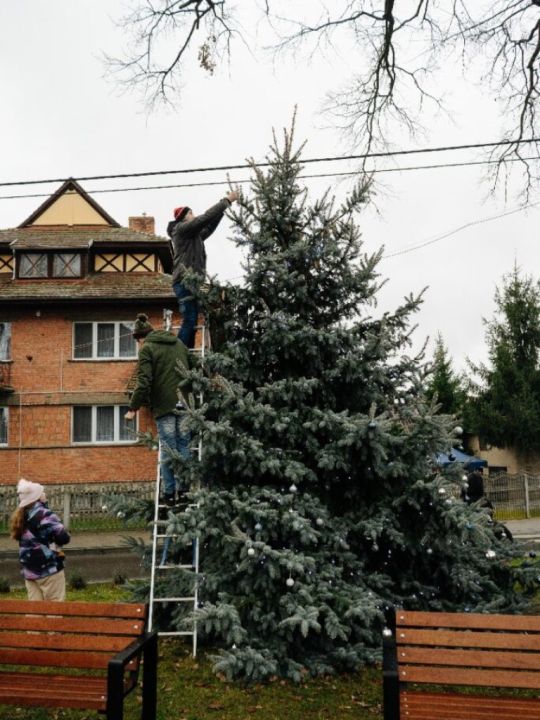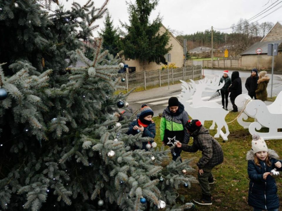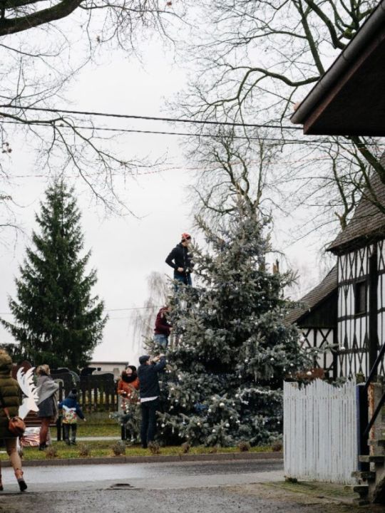 Sołtys, rada sołecka oraz radni zorganizowali wspólne ubieranie choinki w Dąbczu.
