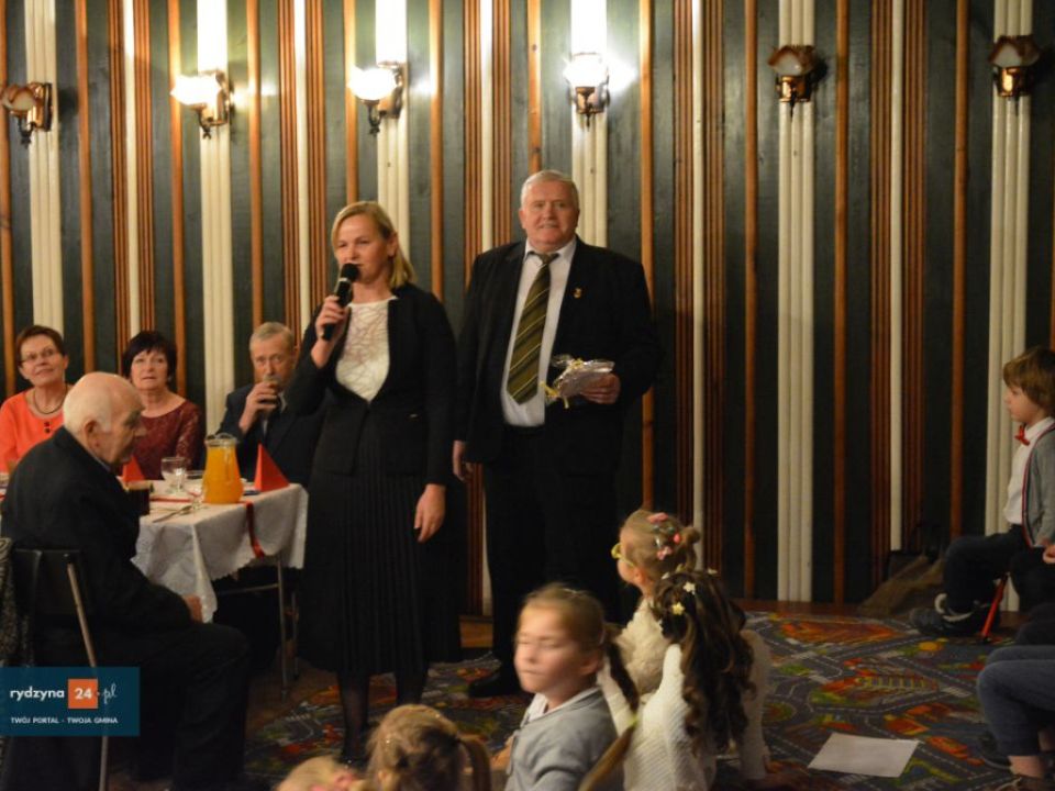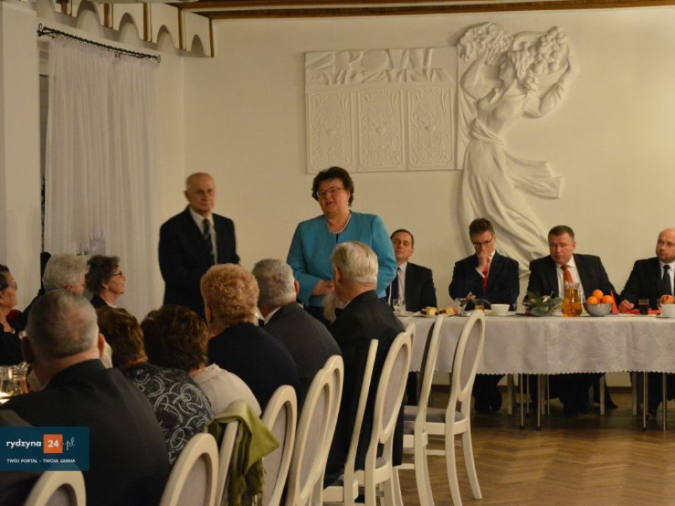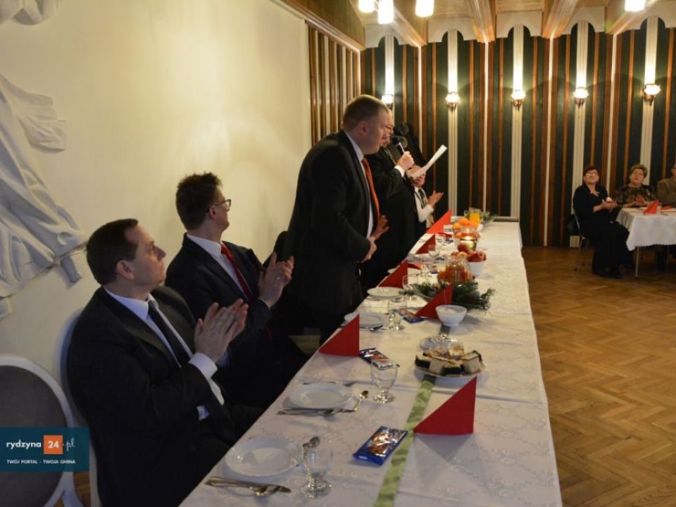 Goście złożyli wszystkim żyzenia. Ostatnim punktem części oficjalnej był występ zespołu śpiewaczego: „Rydzyniacy”, po ktróym nastąpiło tradycyjne przełamanie się opłatkiem.