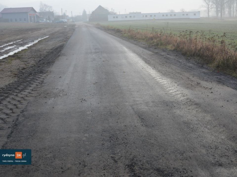 Z kwoty zabezpieczonej w budżecie Gminy Rydzyna została wylana warstwa asfaltu przy wjeździe do miejscowości oraz wykonany odcinek z kostki brukowej. Jest to pierwszy element etapowej przebudowy tej drogi, ponieważ w chwili obecnej Gmina Rydzyna nie posiada środków do przeprowadzenia przebudowy – wylania masy asfaltowej na całym odcinku drogi.”