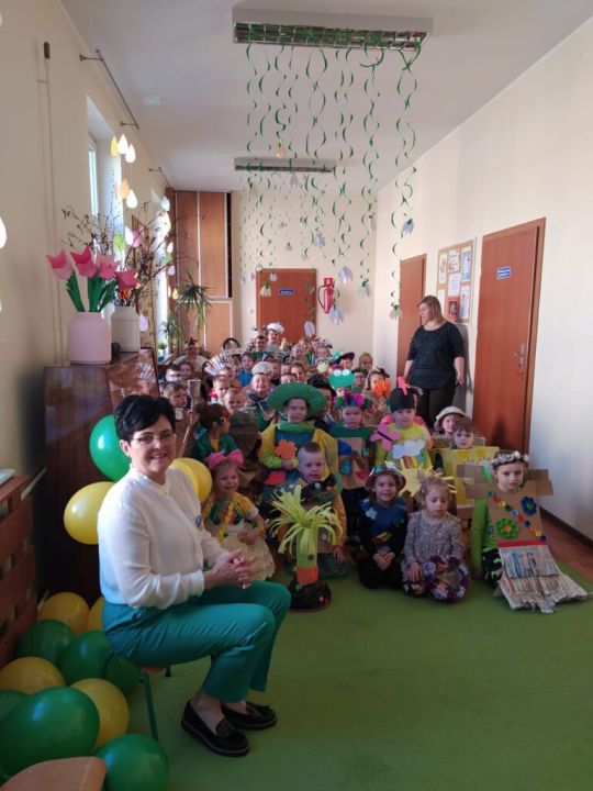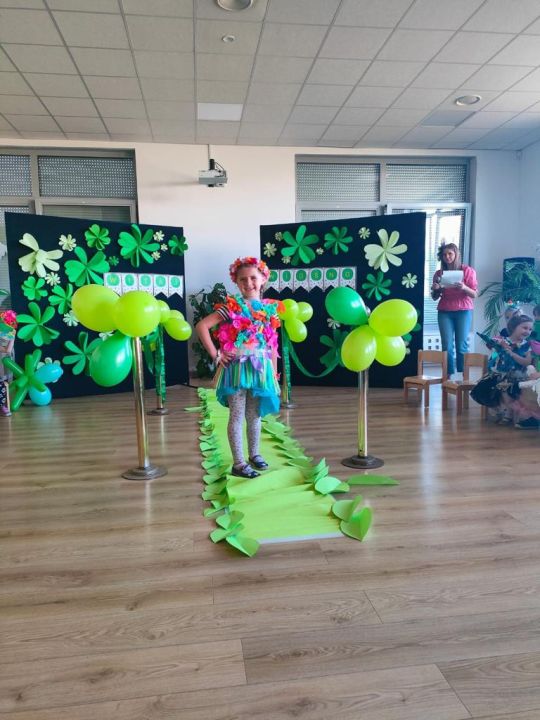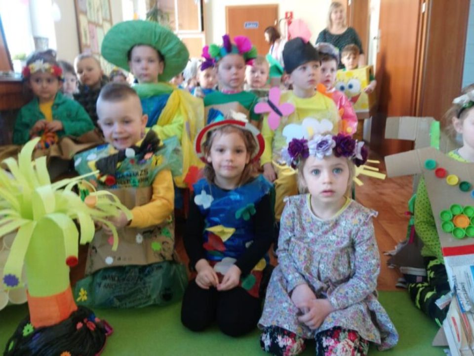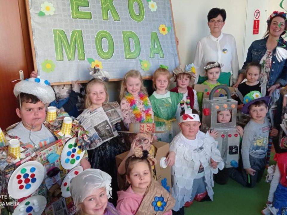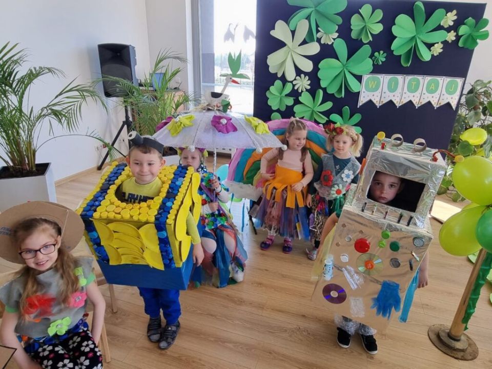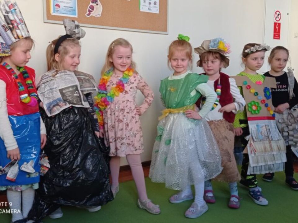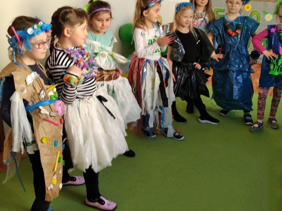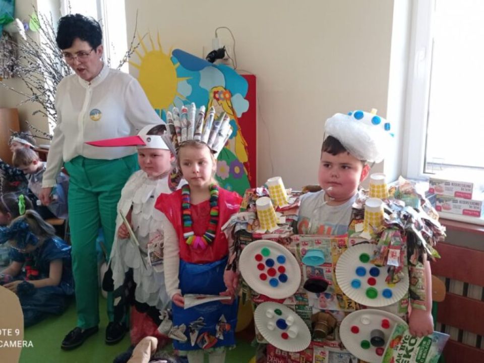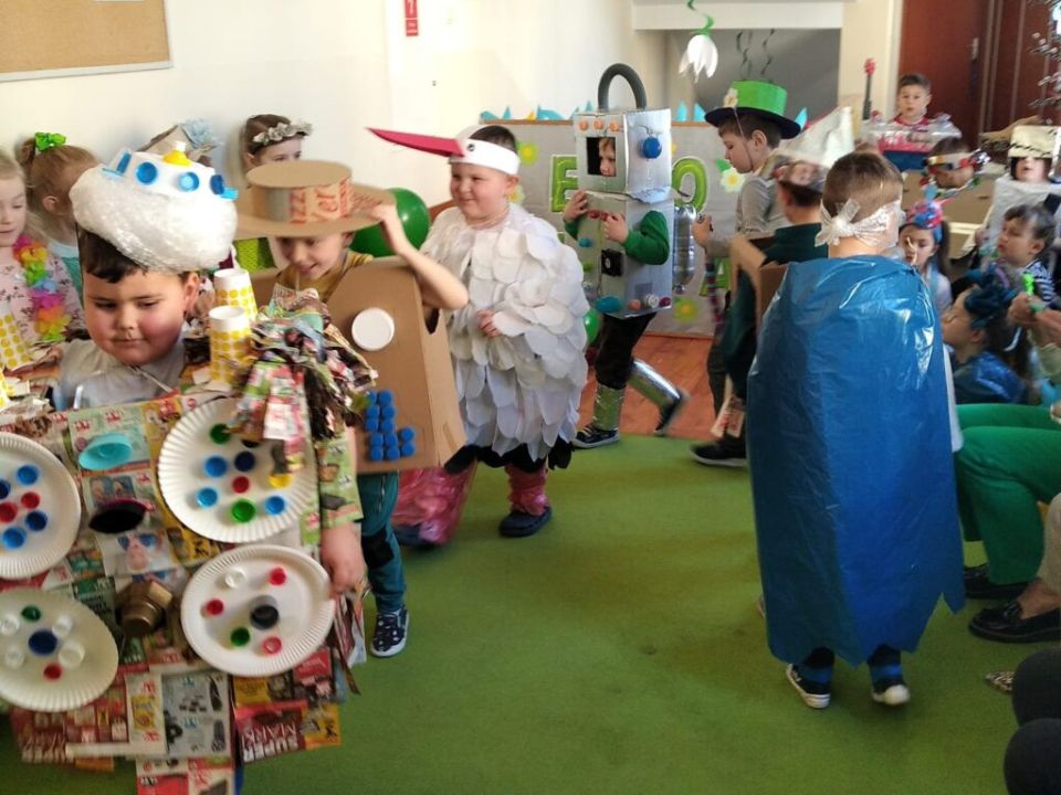 Wcześniej jednak dzieci, a raczej rodzice mieli nie lada zadanie, mianowicie należało przygotować strój z odpadów. Okazali się bardzo kreatywni, a dzieci w owych strojach mogły zaprezentować się w Eko pokazie mody. Oczywiście wszyscy mali uczestnicy otrzymali dyplomy, były również nagrody główne oraz pocieszenia. Ogromne brawa należą się dzieciom, ale jeszcze większe dla rodziców za ich zaangażowanie.