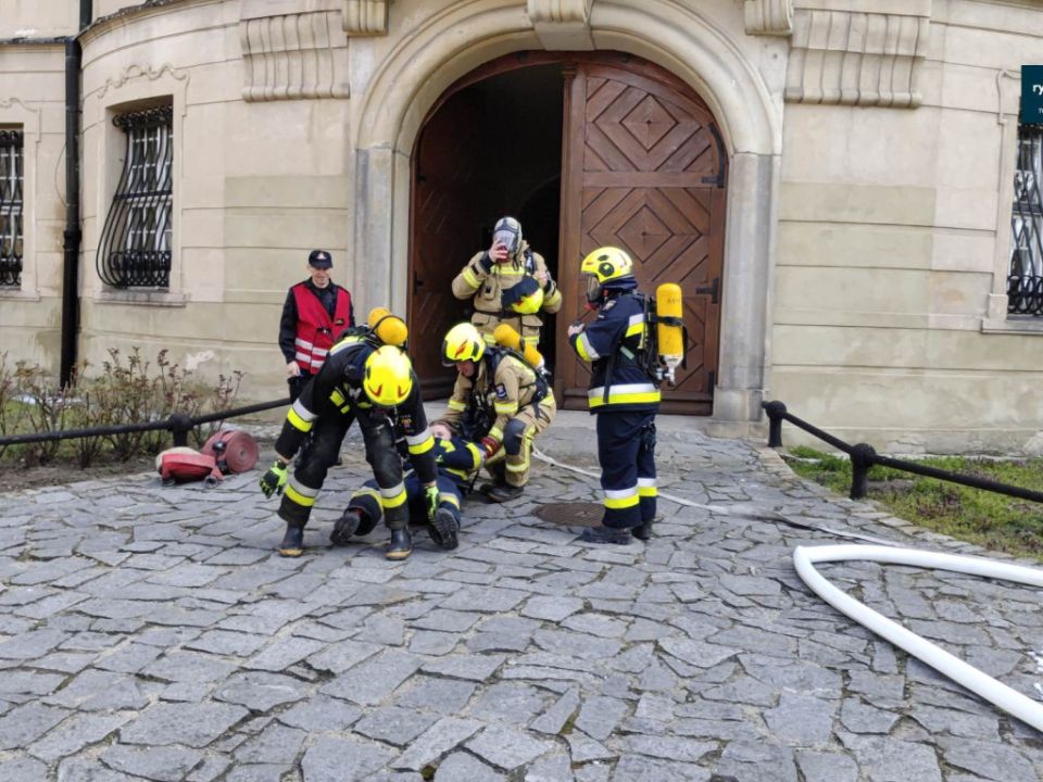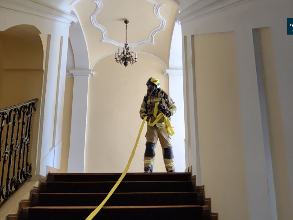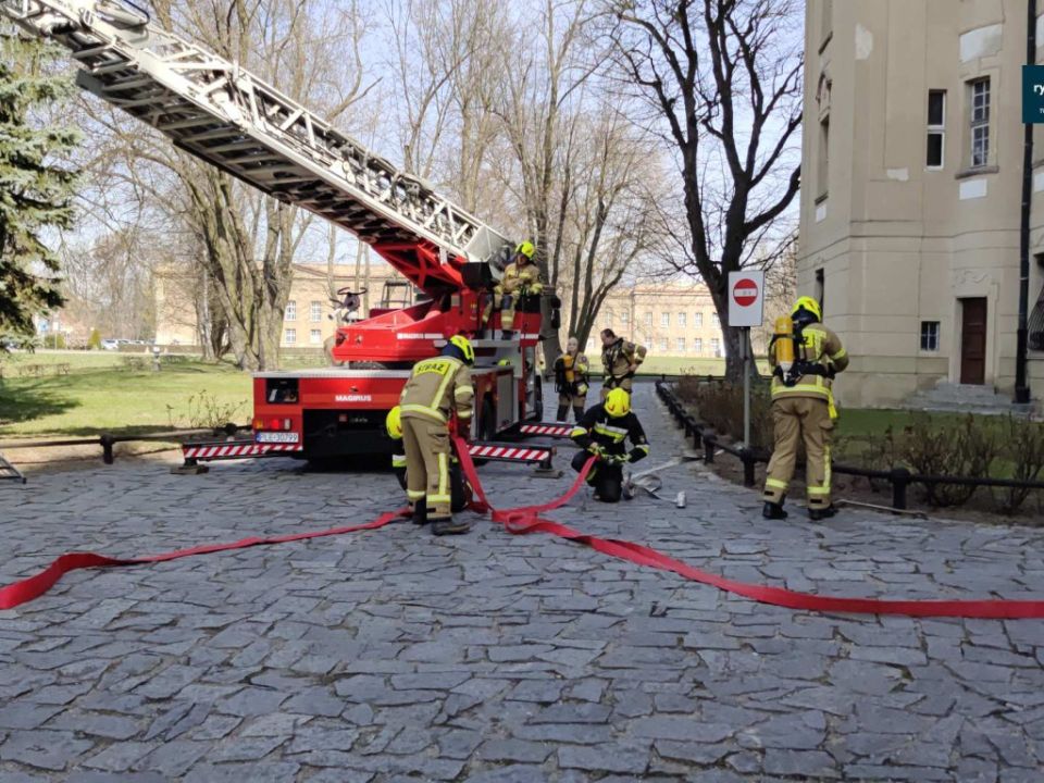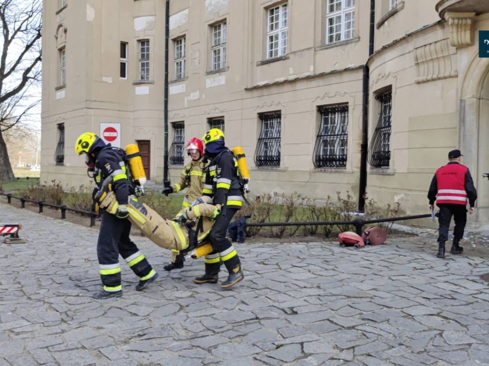 Ćwiczenia strażaków w zamku w Rydzynie [VIDEO]