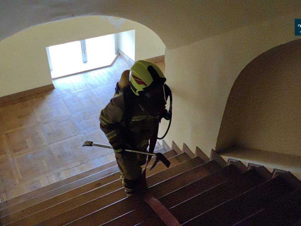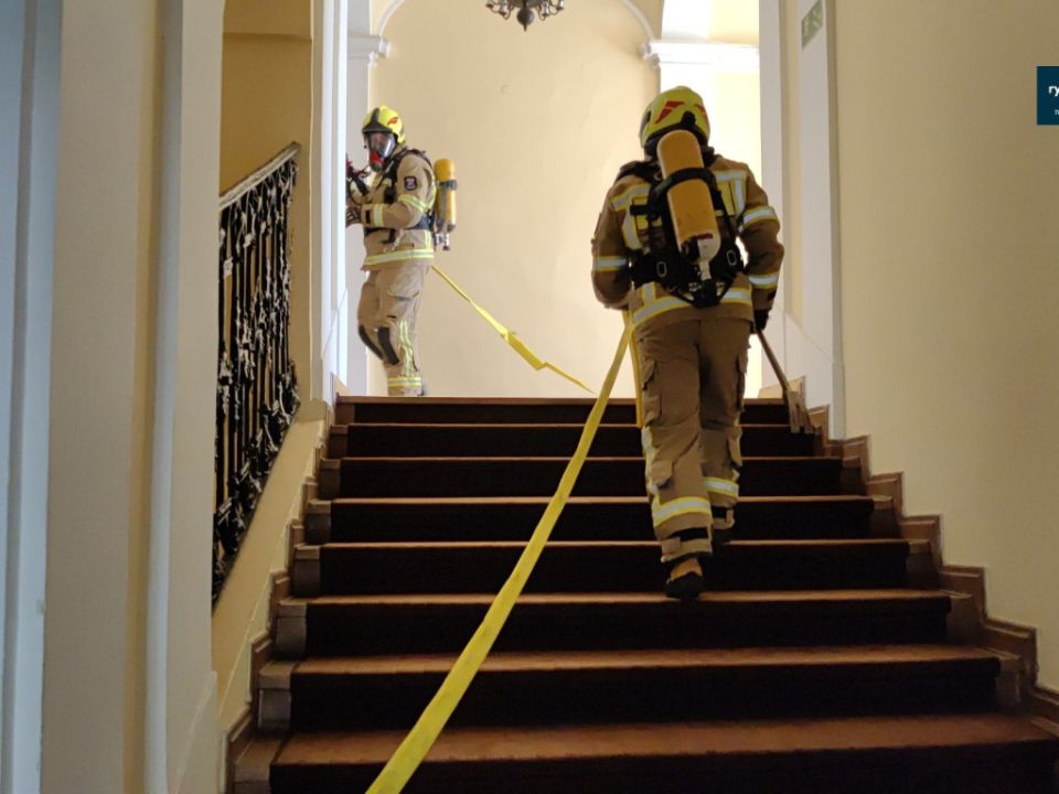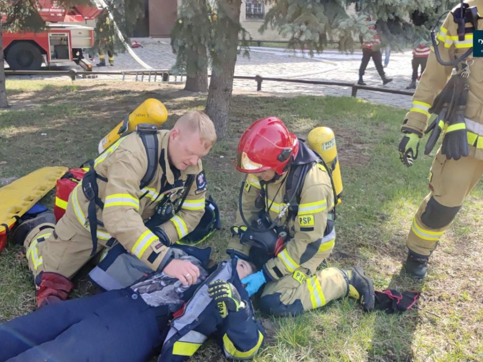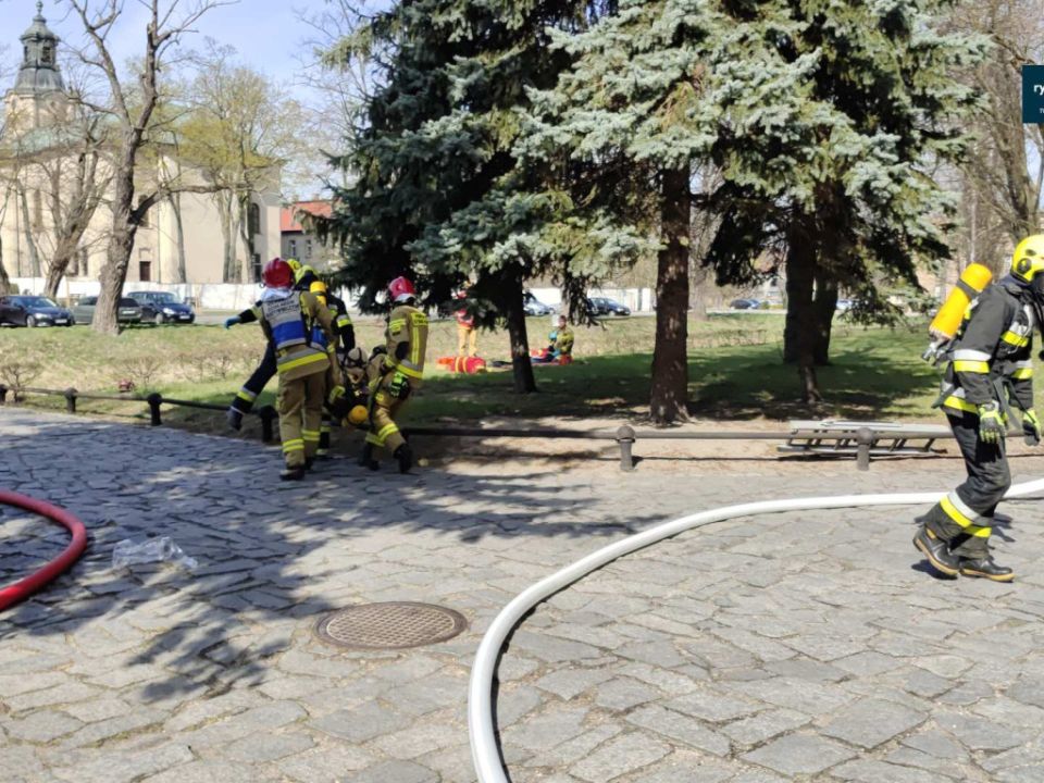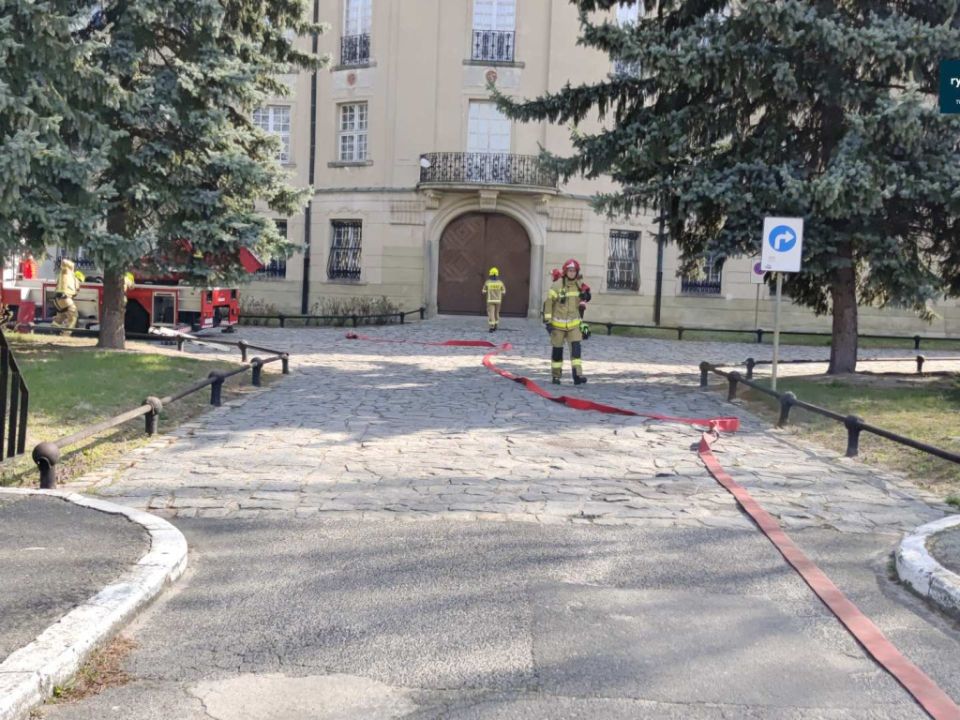 Ćwiczenia strażaków w zamku w Rydzynie [VIDEO]