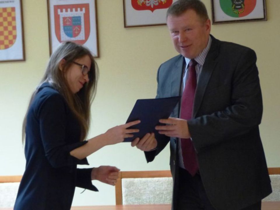 Starosta Jarosław Wawrzyniak 5 stycznia wręczył umowy dziesięciu mieszkańcom powiatu, którzy w roku szkolnym i akademickim 2016/17 złożyli wnioski o dofinansowanie nauki. Uzyskało je osiemnaście osób, ale reszta odbierze umowy w innym terminie.