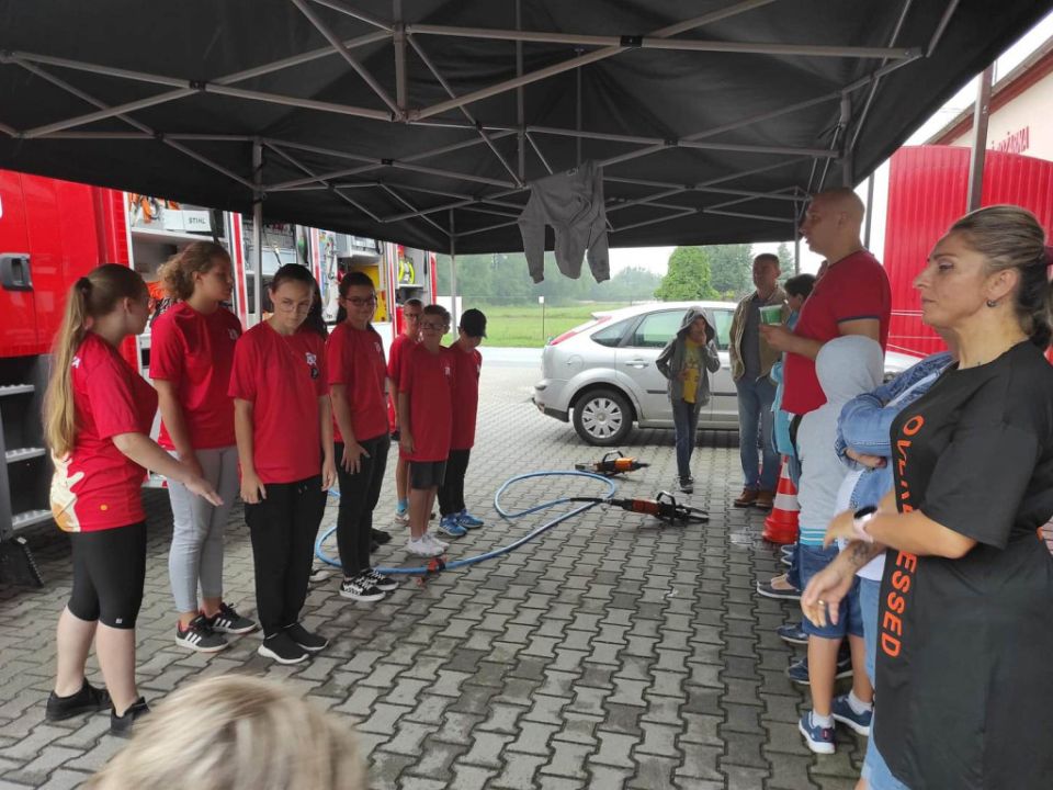 Uczestników spotkania powitał prezes jednostki dh. Tomasz Musiał oraz opiekunowie MDP dh. Aleksandra Lorych i dh. Maciej Tobółka. Dla gości został przygotowany bufet z grillem oraz różne atrakcje. Drużyna młodzieżowa, zaprezentowała rodzicom pokaz musztry, a następnie omówiła wyposażenie auta bojowego.