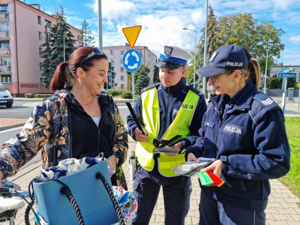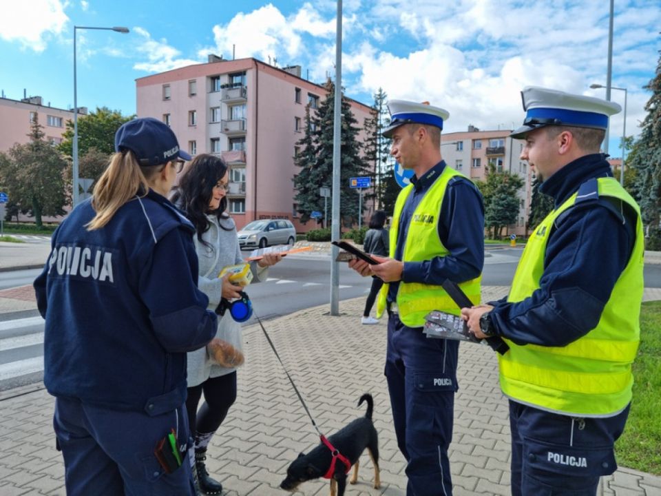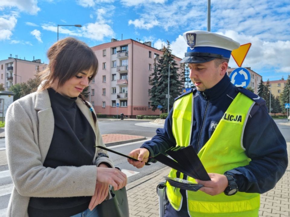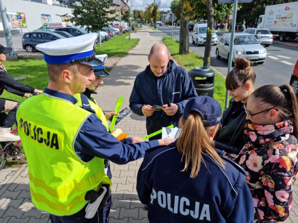 W czasie trwania działań mundurowi wręczają ulotki informacyjne oraz elementy odblaskowe.