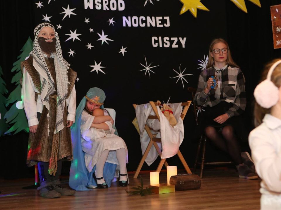 Spektakl muzyczno – słowny ubarwiły również babcie i dziadkowie przedszkolaków, którzy odśpiewali z wnukami piękne kolędy i pastorałki. Na scenie z pięknym utworem „Matko czy ty wiesz” wystąpiła również uczennica rydzyńskiego Gimnazjum i była absolwentka przedszkola Alicja Siecla.
