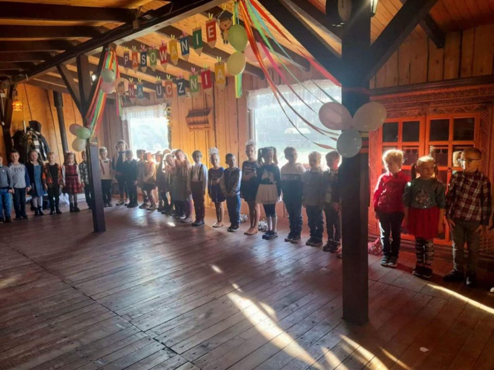 Pasowanie uczniów klas pierwszych ze Szkoły Podstawowej im. Tadeusza Łopuszańskieg