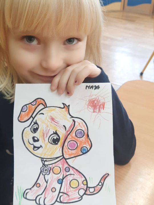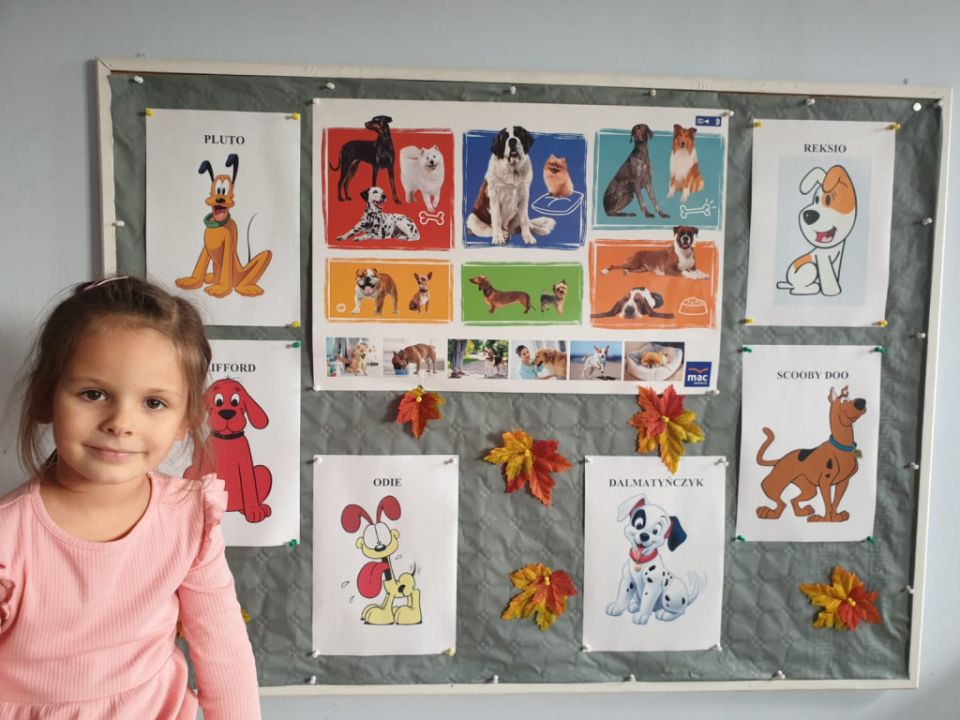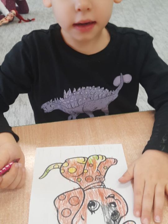 Dzieci z grupy „Wróbelki” kolorowały pieski, rozmawiały o swoich pupilach, jak o nie dbać, co potrzebują do tego żeby były szczęśliwe, jak nazywa się lekarz, który opiekuje się zwierzętami. Po zajęciach szukały domków, w których mieszkają pieski i rozmawiały z ich właścicielami.