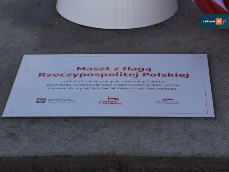 Gmina Rydzyna wzięła udział w projekcie ministerialnym „Pod Biało-Czerwoną”, w ramach którego gminy w całej Polsce mogły składać wnioski na zakup i montaż masztu z biało-czerwoną flagą. Wspomniany projekt zakładał sfinansowanie przez rząd RP zakupu masztów i flag i w każdej z gmin w Polsce, pod warunkiem zebrania odpowiedniej liczby głosów poparcia. Gmina Rydzyna spełniła warunki i tym samym mogła złożyć do Wojewody wniosek o realizację zadania. Wniosek przeszedł pozytywną ocenę i otrzymał dotację w wysokości 6.106,95 zł. na sfinansowanie zakupu i postawienie masztu z flagą Polski na terenie naszej Gminy, w pobliżu wiatraka „Józef”.
