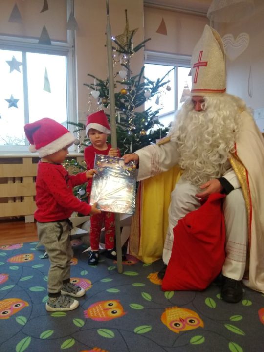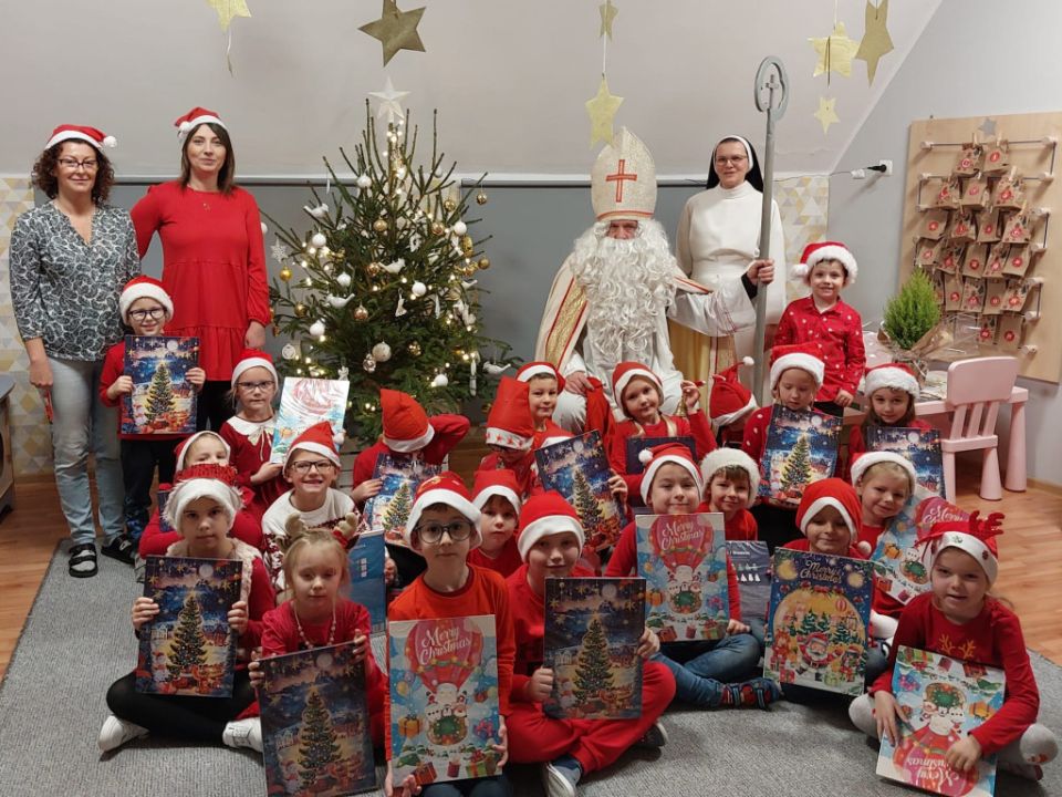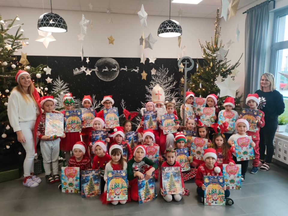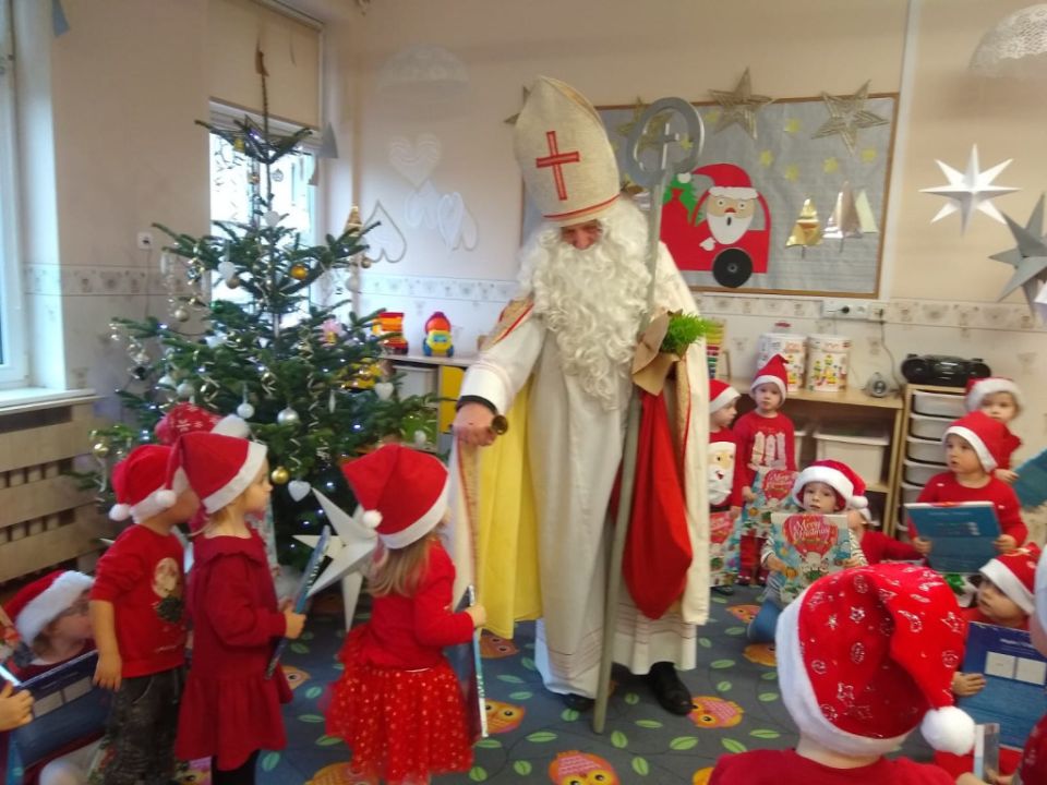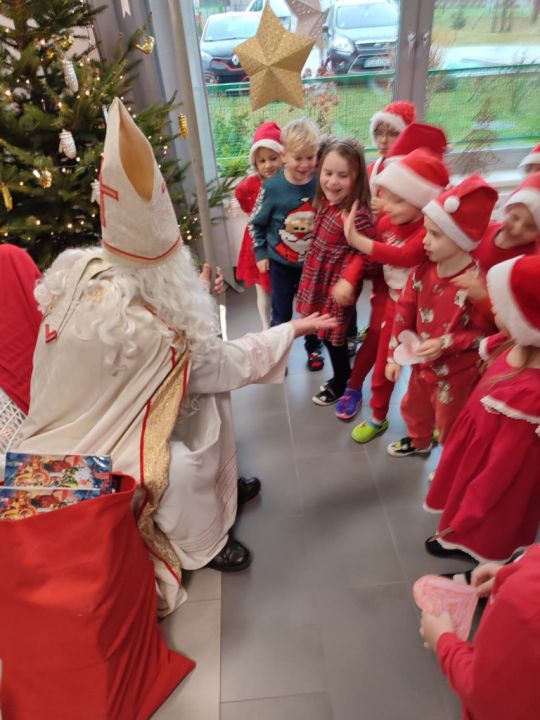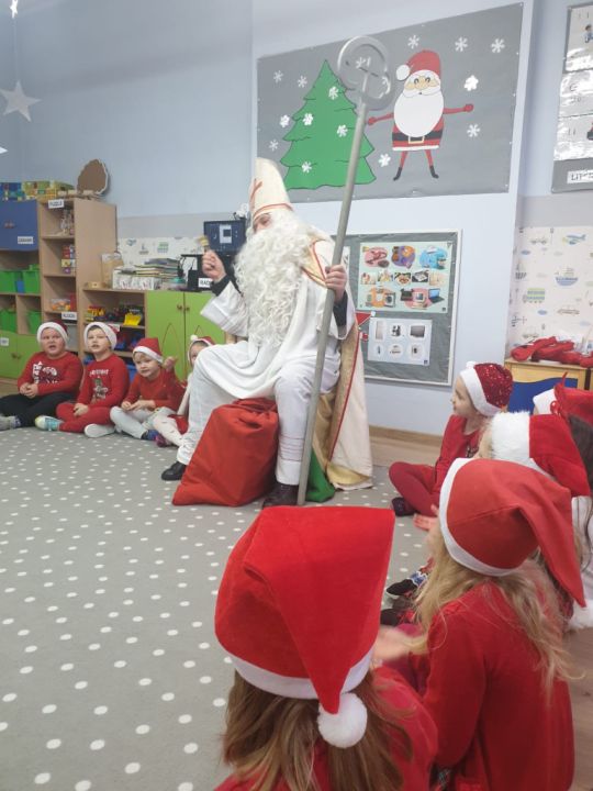 W tym oczekiwanym przez cały rok – wyjątkowym dniu, małych podopiecznych odwiedził Święty Mikołaj. Podarował on wszystkim dzieciom kalendarze adwentowe ufundowane przez Radę Rodziców. Dodatkowo niespodziankę sprawił Burmistrz MiG Rydzyna Pan Kornel Malcherek, który wręczał wraz ze swoimi uroczymi elfami każdemu dziecku czekoladę.