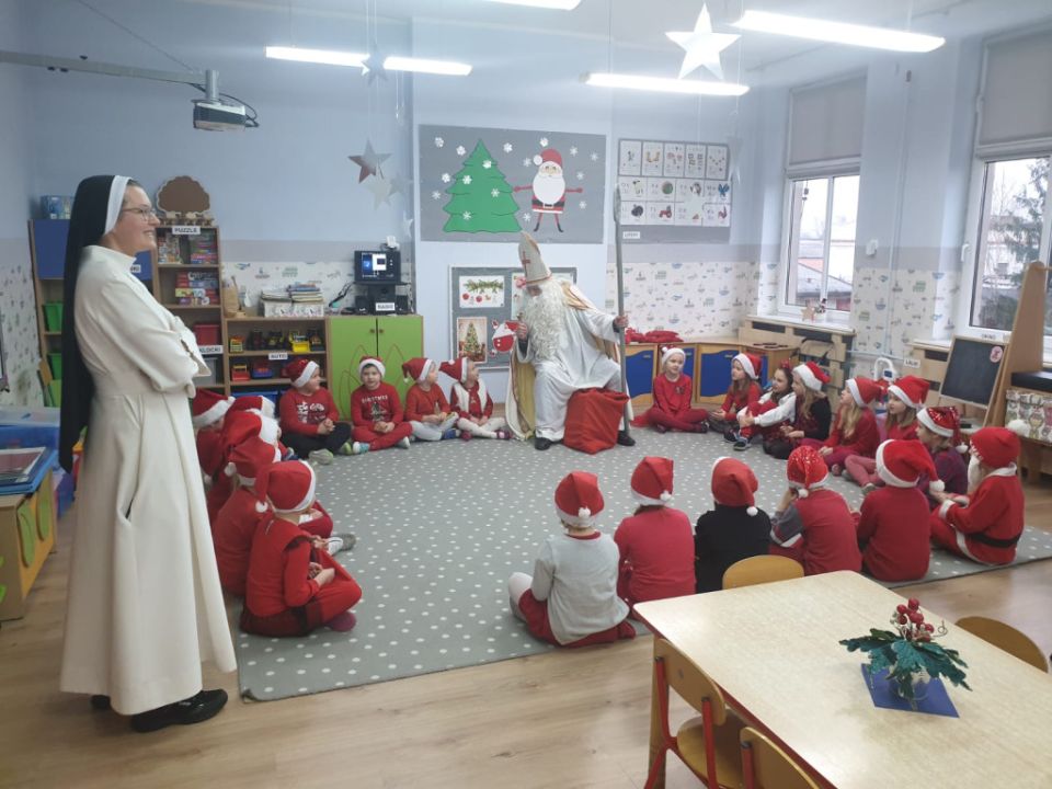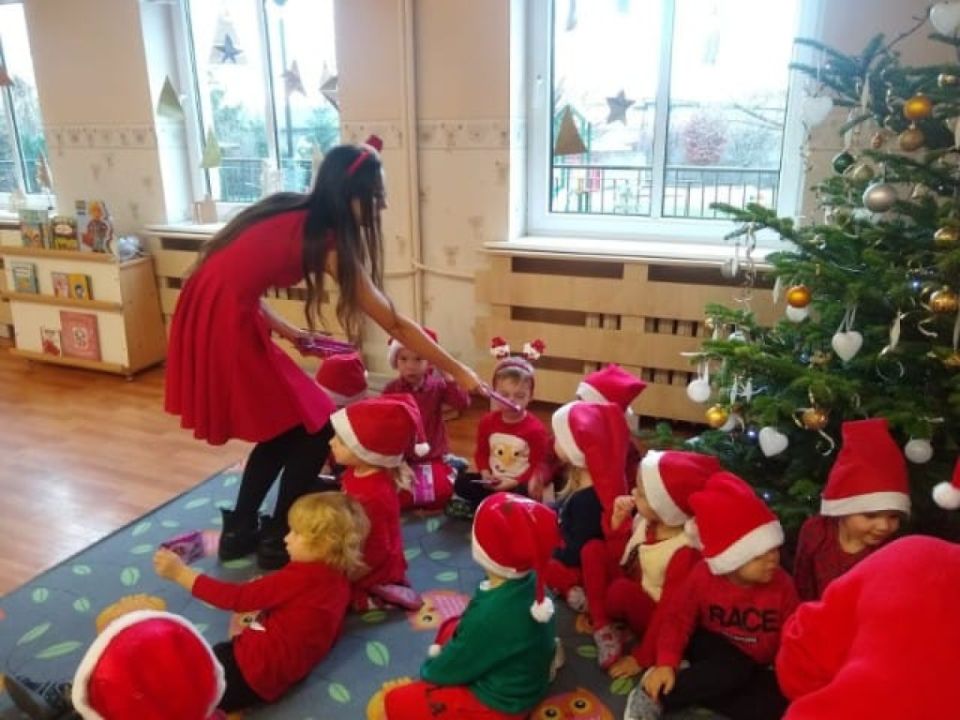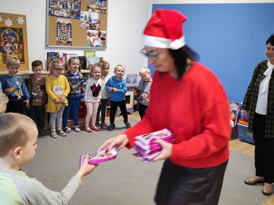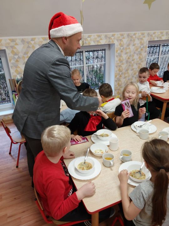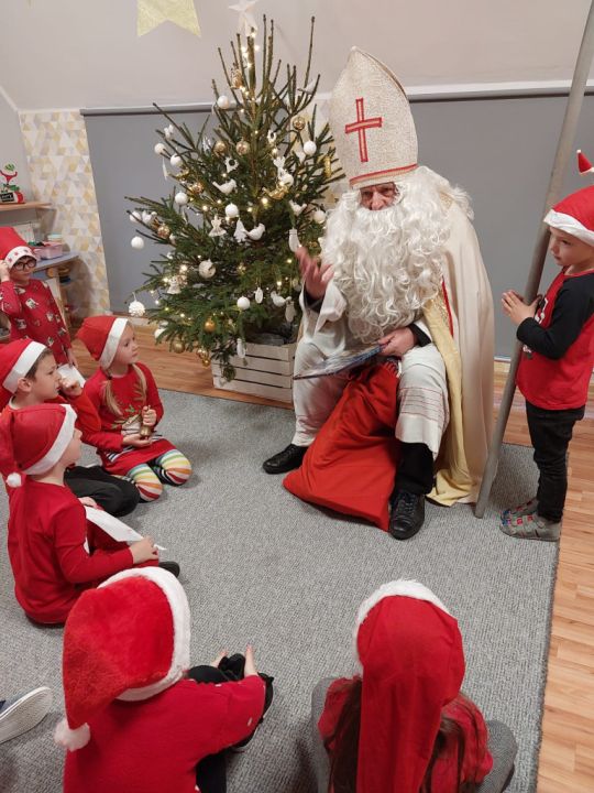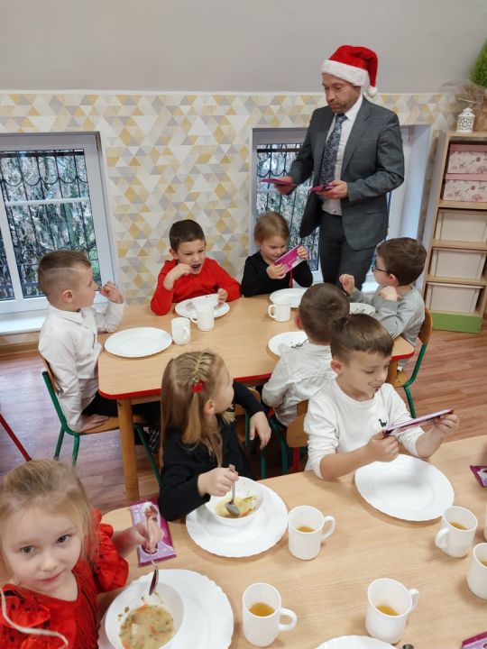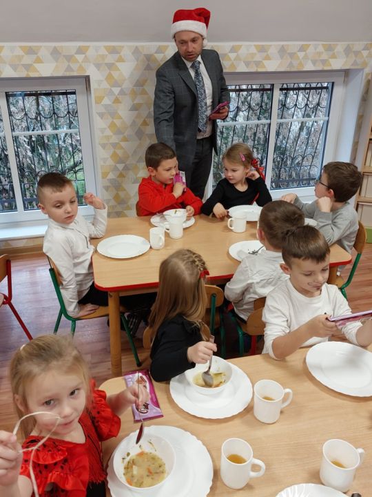 W tym oczekiwanym przez cały rok – wyjątkowym dniu, małych podopiecznych odwiedził Święty Mikołaj. Podarował on wszystkim dzieciom kalendarze adwentowe ufundowane przez Radę Rodziców. Dodatkowo niespodziankę sprawił Burmistrz MiG Rydzyna Pan Kornel Malcherek, który wręczał wraz ze swoimi uroczymi elfami każdemu dziecku czekoladę.