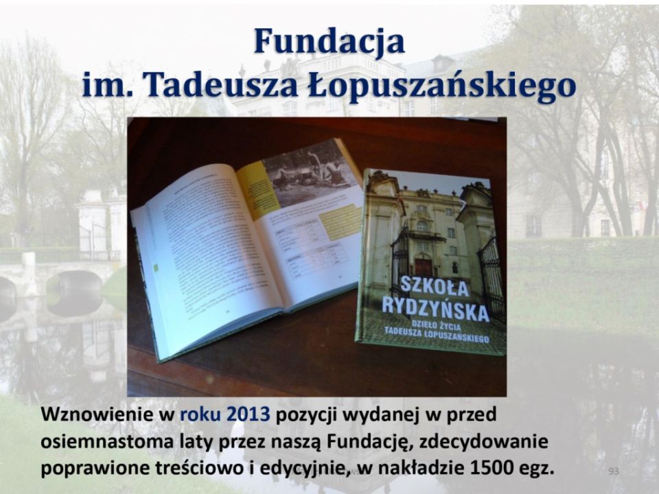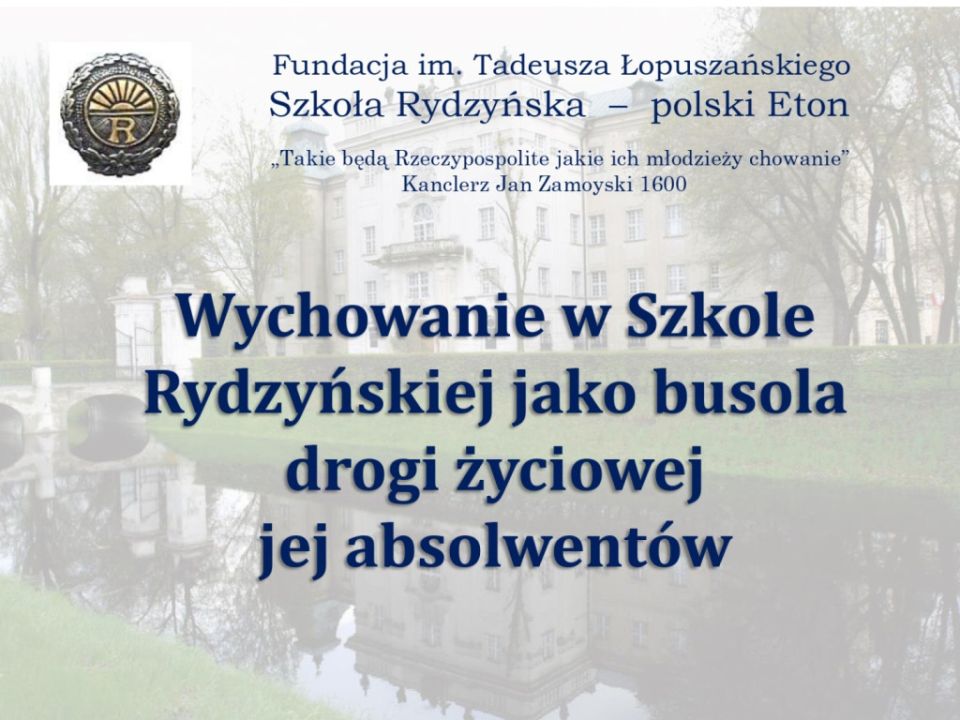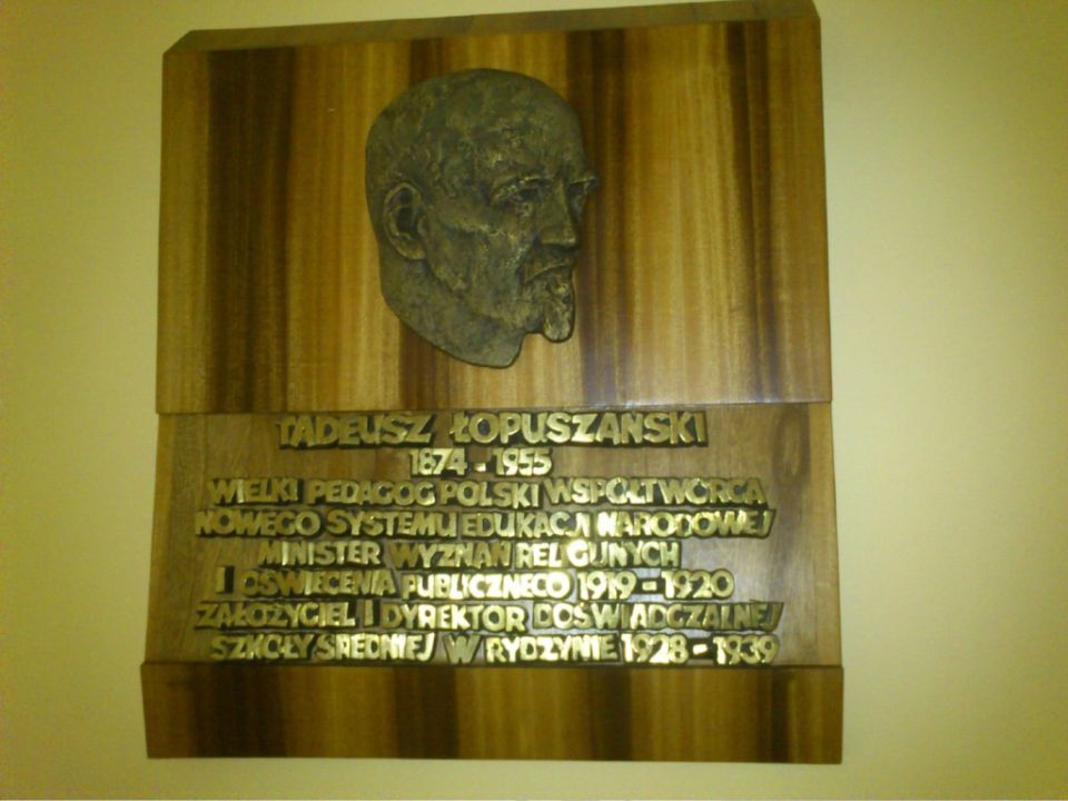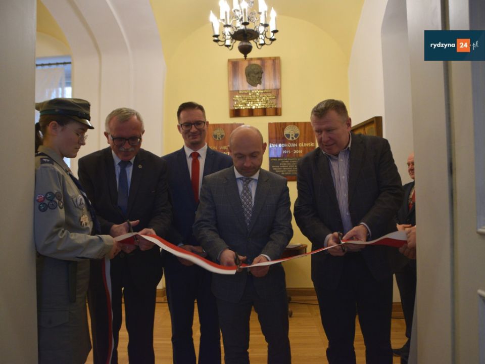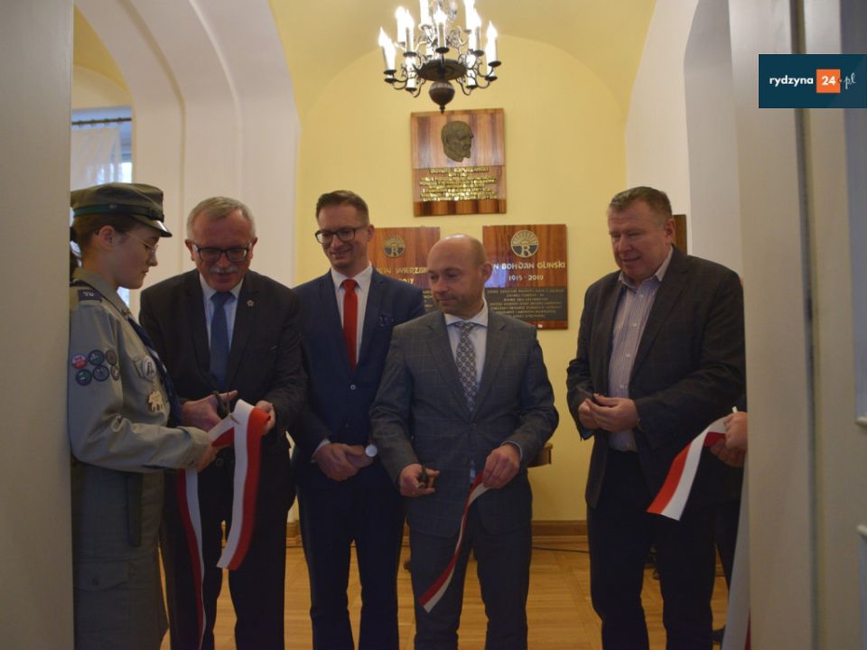 W dalszej części Burmistrz Miasta i Gminy Rydzyny Kornel Malcherek, Przewodniczący Rady Miejskiej w Rydzynie Roman Skiba, Starosta Powiatu Leszczyńskiego Jarosław Wawrzyniak i Dyrektor Biura Wojewody Wielkopolskiego w Lesznie Zenon Jóźwiak dokonali przecięcia wstęgi i otwarcia Sali Tradycji poświęconej Tadeuszowi Łopuszańskiemu i jego szkole. Na wystawie pokazano między innymi świadectwo szkolne, pomoce wykonane przez rydzyńskich uczniów, listy pisane przez Tadeusza Łopuszańskiego i nauczyciela Mariana Jasińskiego, książki opisujące działania rydzyńskiej szkoły jak i „Rydzyniaka” czasopismo redagowane przez uczniów. Jest też mnóstwo innych dokumentów i zdjęć ukazujących działania rydzyńskich uczniów i nauczycieli. Można tam też zobaczyć rzeczy współczesne z końca XX w. Jest to sztandar Rydzyńskiego Gimnazjum im. Sułkowskich nawiązującego do historii przedwojennej. Na koniec wszyscy zebrani uczestniczyli w prelekcji przedstawiającej życie Jana Bohdana Glińskiego oraz działalność rydzyńskiej szkoły.