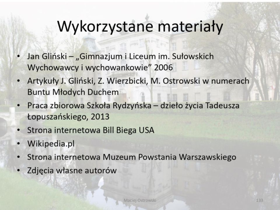 Powstanie wystawy oraz tablicy nie było by możliwe bez wsparcia Zamku SIMP w Rydzynie oraz Urzędu Miasta i Gminy Rydzyna.