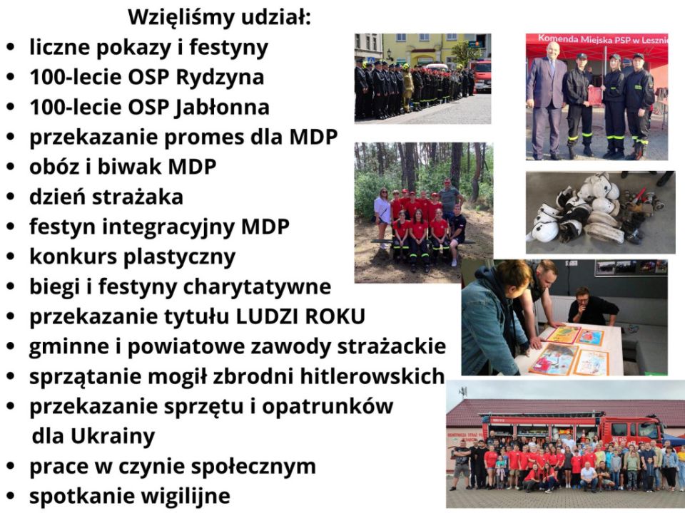 Uczestniczyli w wielu uroczystościach jak np. 100-lecie OSP Rydzyna, 100-lecie OSP Jabłonna oraz festynach.