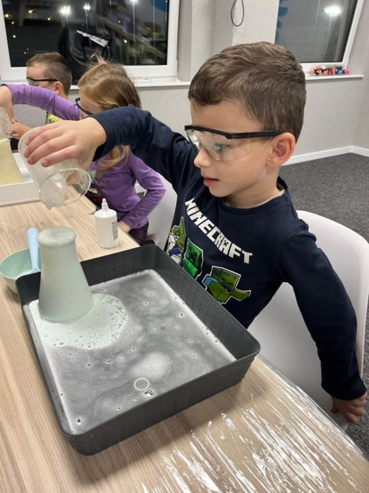 chemii na warsztatach magiczno – chemicznych lub zanurza się w krainę barw i światła na zajęciach