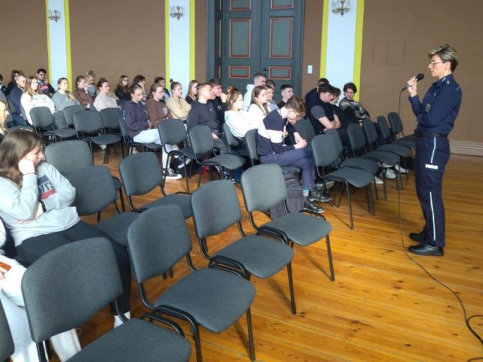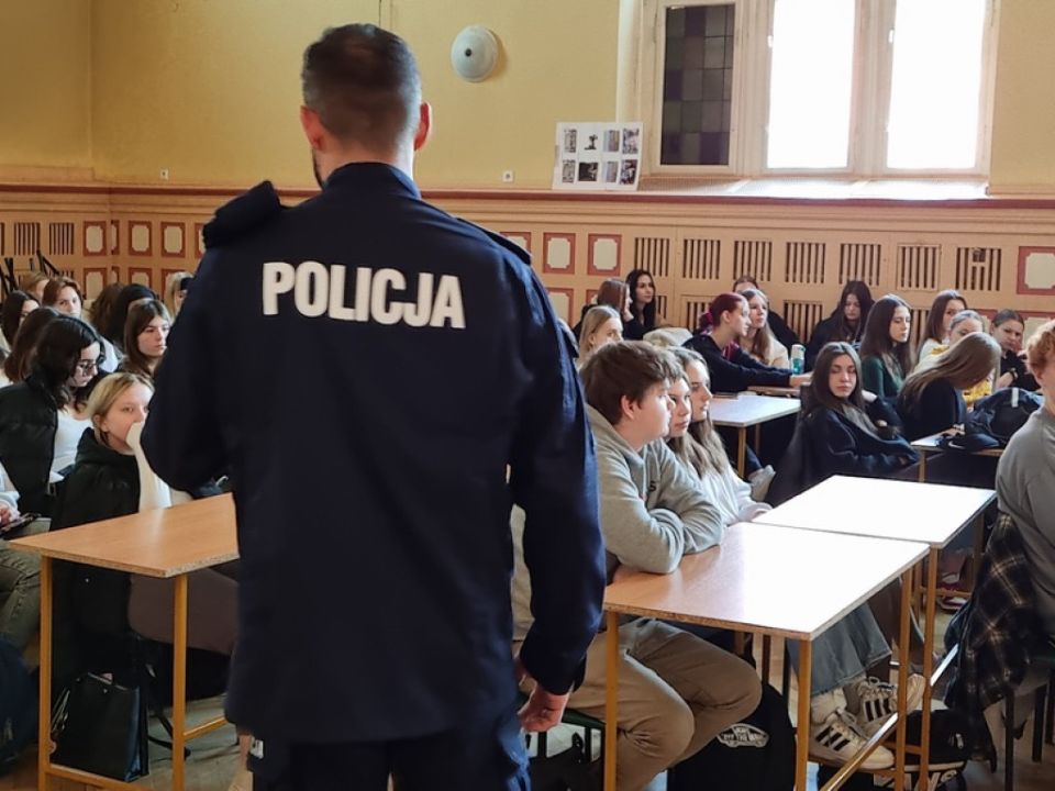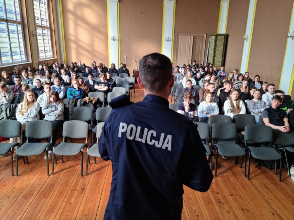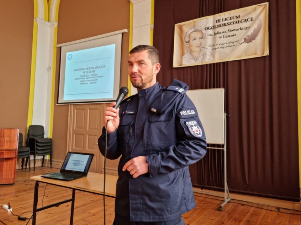 W ostatnich dniach w Zespole Szkół Ekonomicznych w Lesznie oraz w III Liceum Ogólnokształcącym w Lesznie gościli policjanci z Komendy Miejskiej Policji w Lesznie – Naczelnik Wydziału Prewencji podinsp. Krzysztof Kubiak i Oficer Prasowy asp. szt. Monika Żymełka. Udział w spotkaniach wzięło ponad 200 uczniów klas IV i V, w tym o profilu policyjnym, stojących u progu dorosłości, mierzących się z wyborem kierunku dalszego kształcenia oraz zawodu.