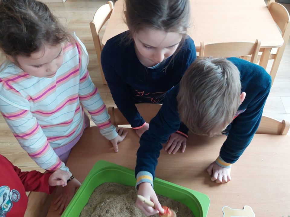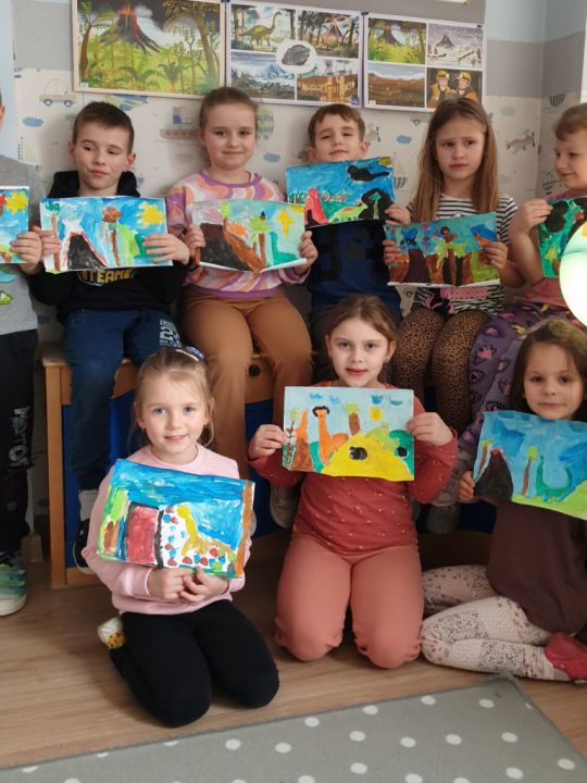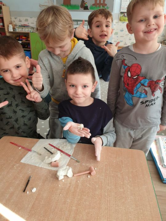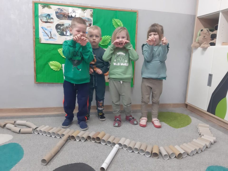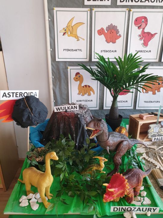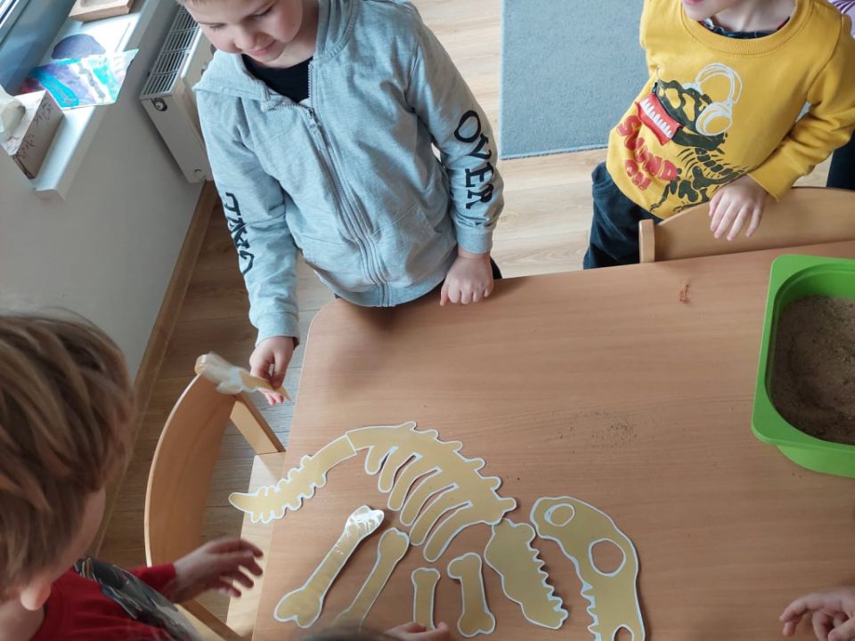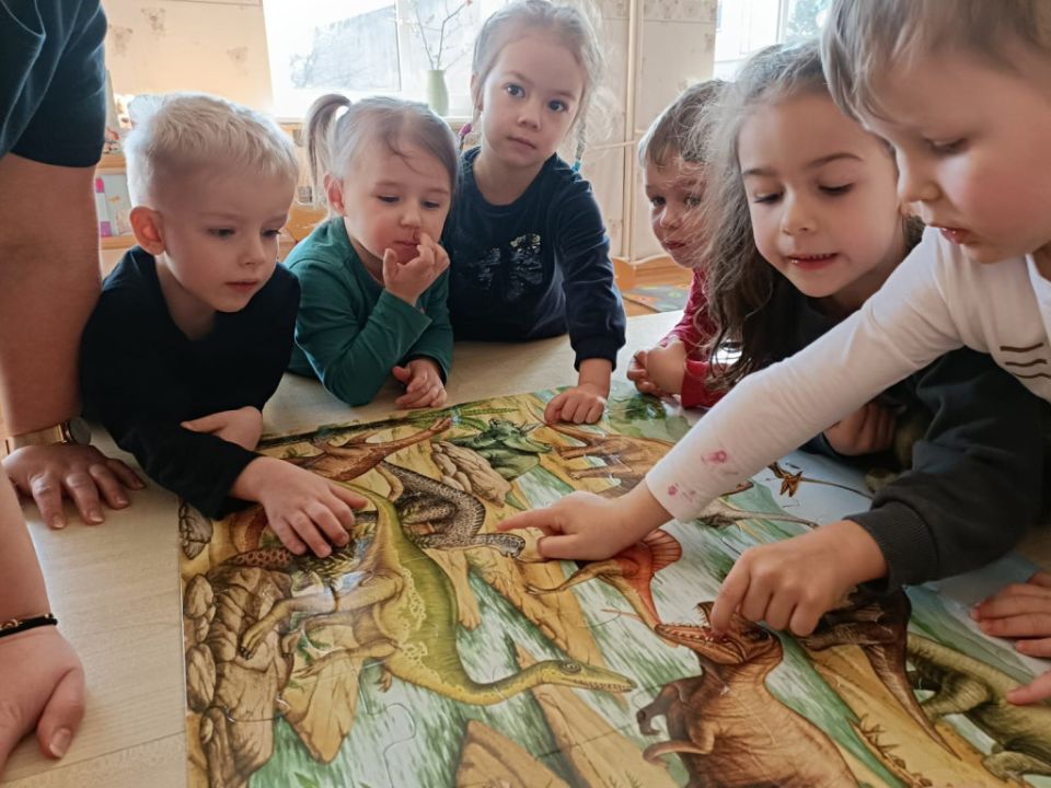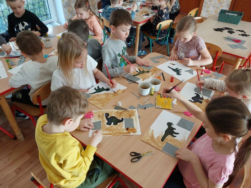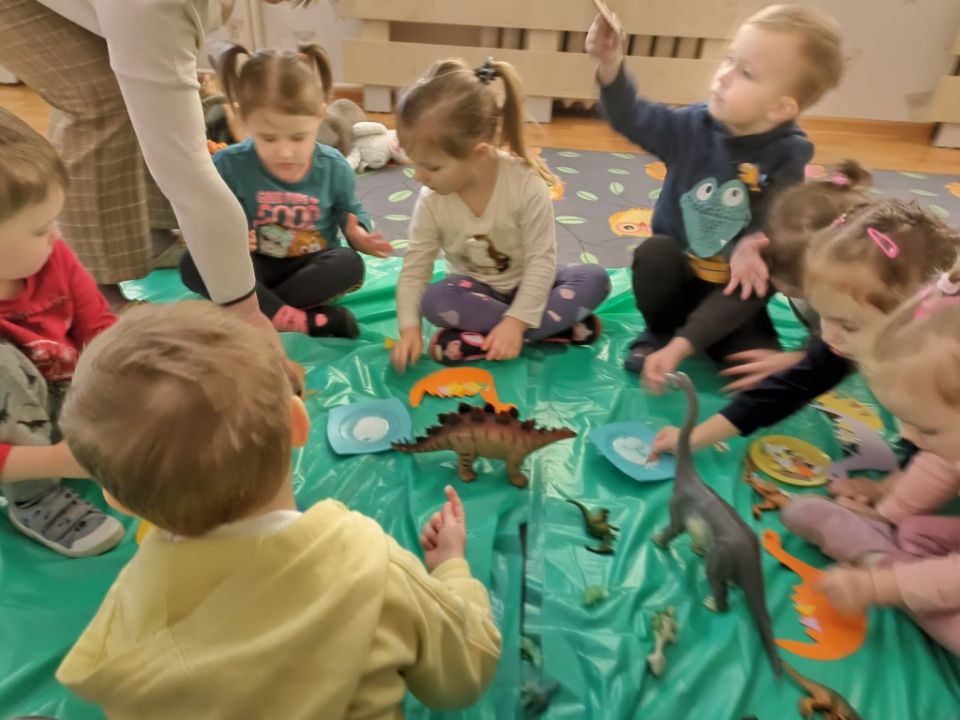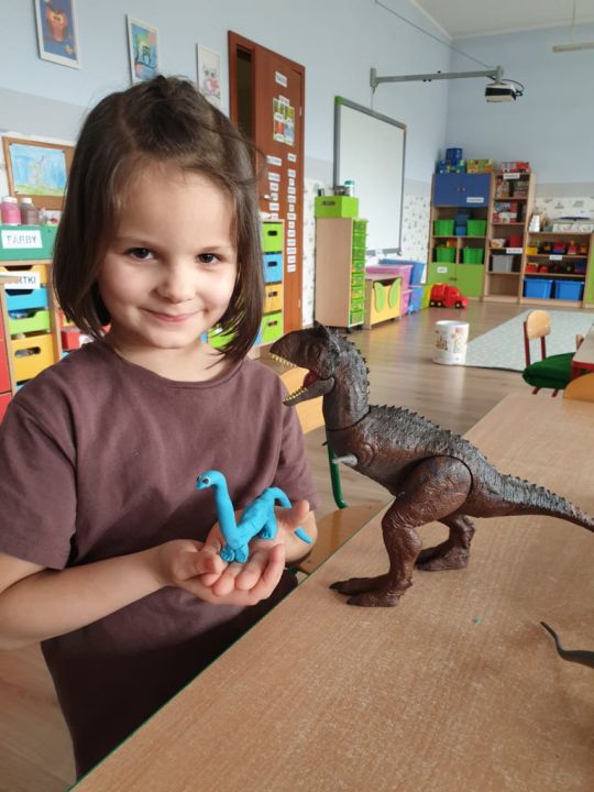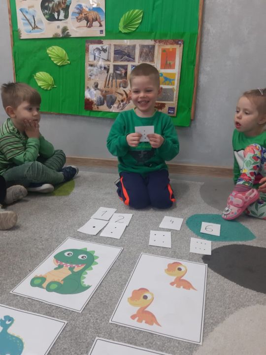 Przedszkolaki podczas zajęć dydaktycznych doskonalą również umiejętności matematyczne poznając wielkości i cyfry. Doskonalą także motorykę małą podczas: rysowania, kolorowania, pisania, wycinania czy lepienia. Tematyka o dinozaurach zawsze wzbudza wiele emocji.
