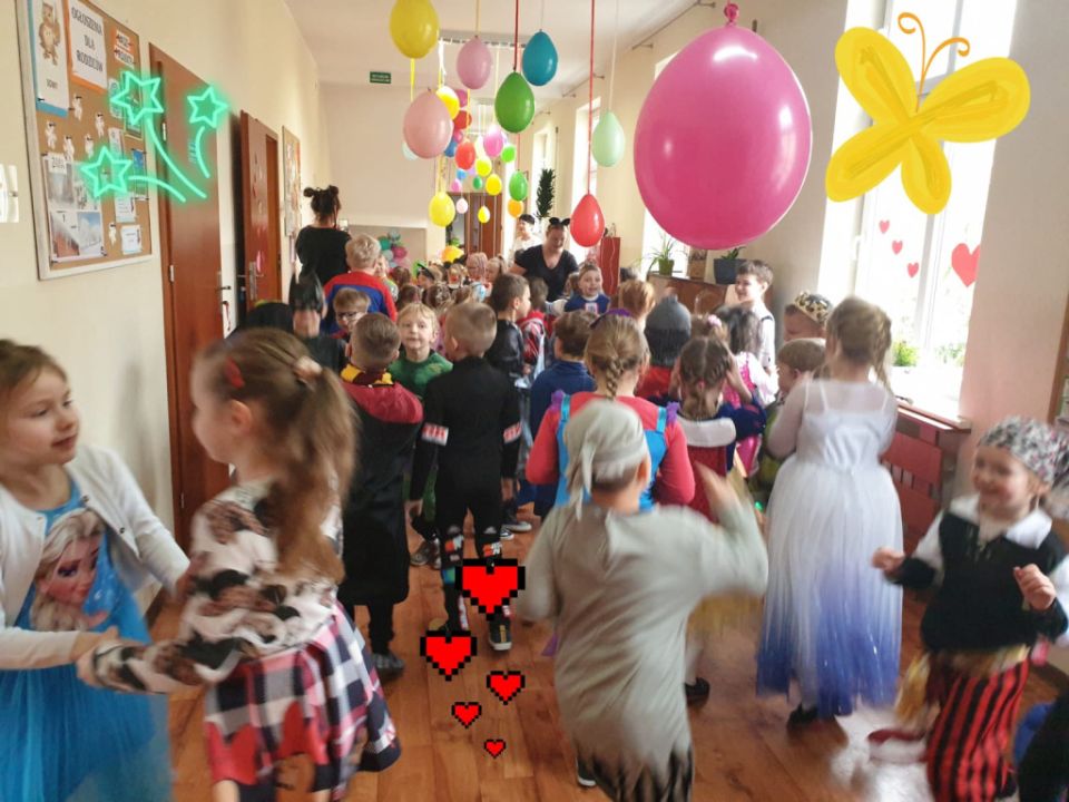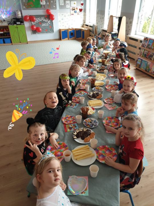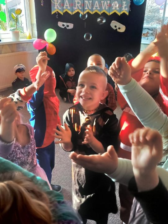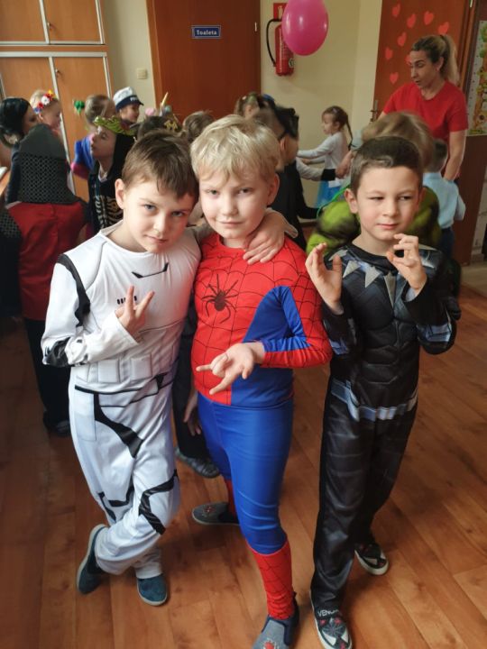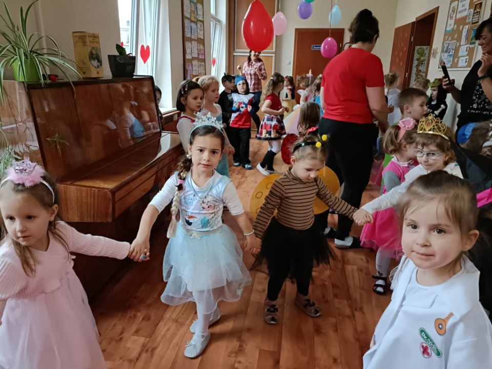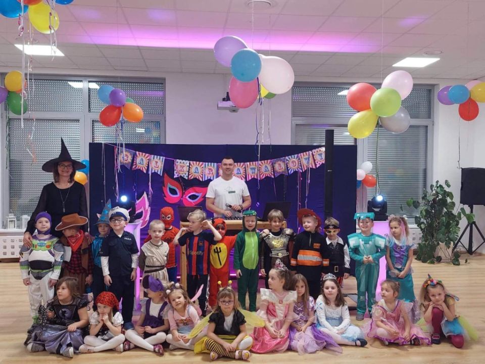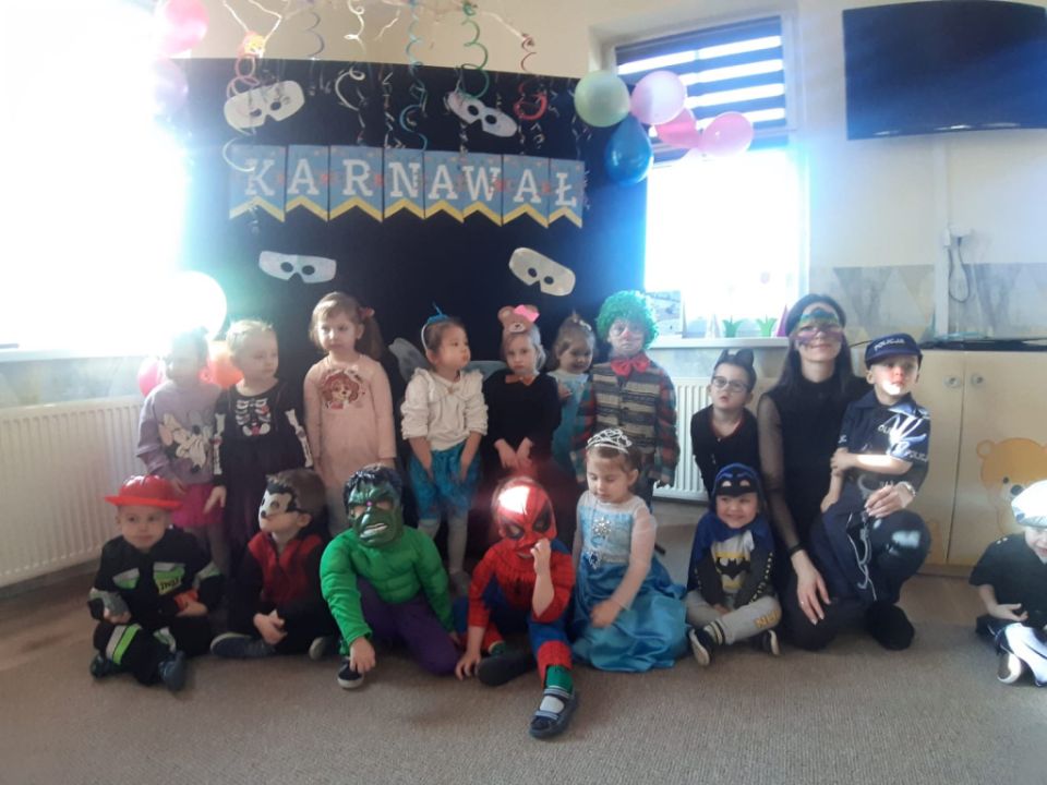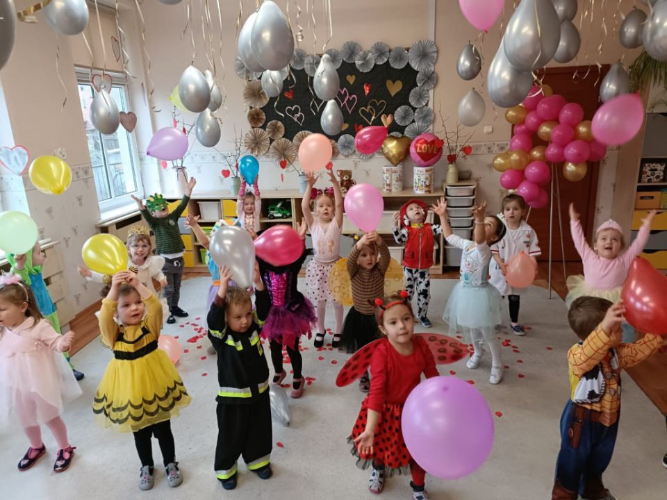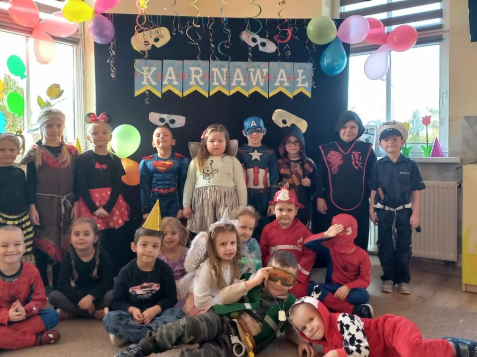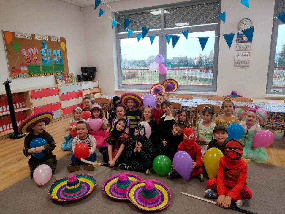 W związku z kończącym się karnawałem w Przedszkolu Kolorowy Wiatraczek w Rydzynie odbyły się baliki dla dzieci zorganizowane przez nauczycielki. Podopieczni mieli okazję bawić się w wesołej atmosferze prezentując kolorowe stroje zazwyczaj swoich ulubionych postaci bajkowych.