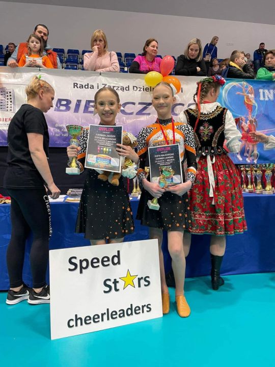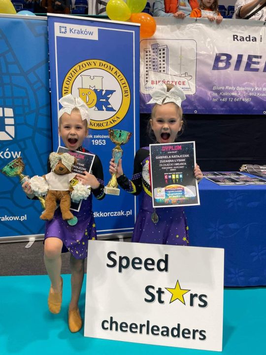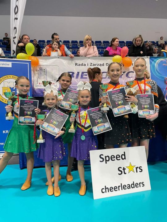 Dziewczyny z sekcji Speed Stars Rydzyna wróciły do domu z medalami. Turniej Grand Prix Kraków 4.03. 2023 przeniósł najśmielsze oczekiwania. Ze złotem wrócił duet Amelii i Julianny (pom dance elite j.Mł.), Gabrysi i Zosi (pom dance elite dzieci) oraz mini drużyna pom dance elite dzieci. Srebrny medal przywiózł duet Carmen i Zosi, które w pom dance elite j. Ml znalazły się tuż za swoimi koleżankami.