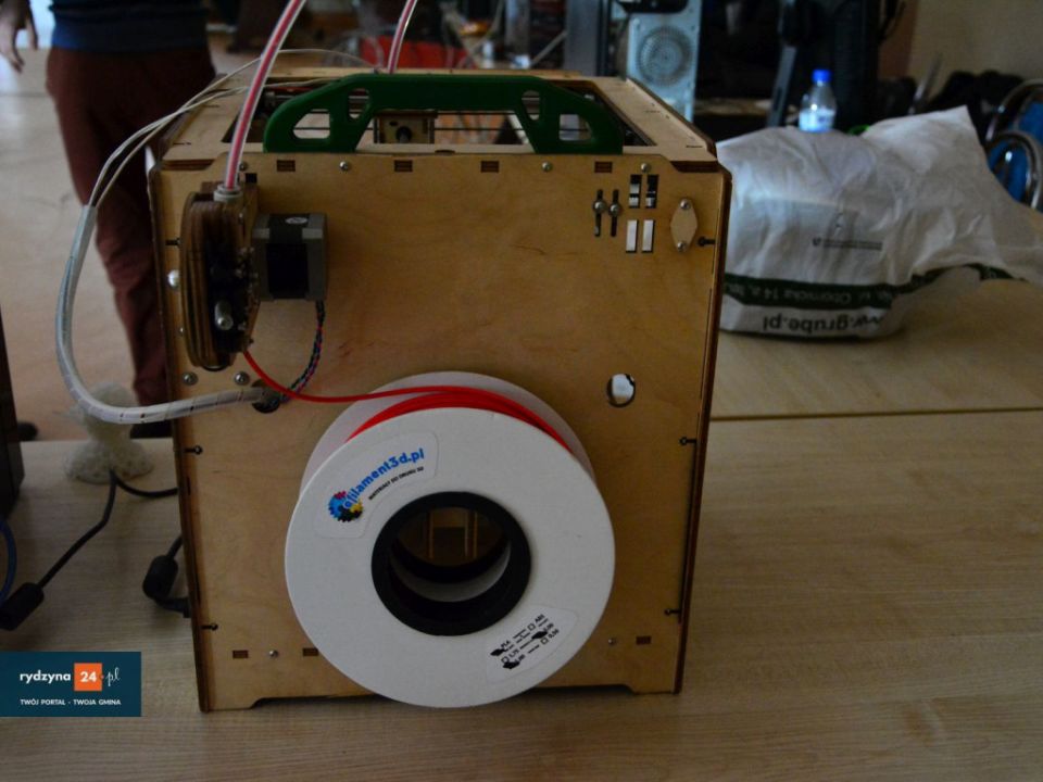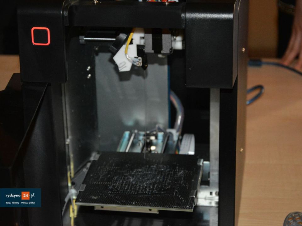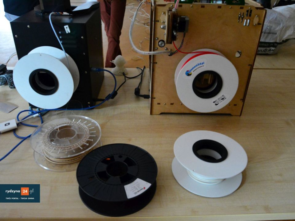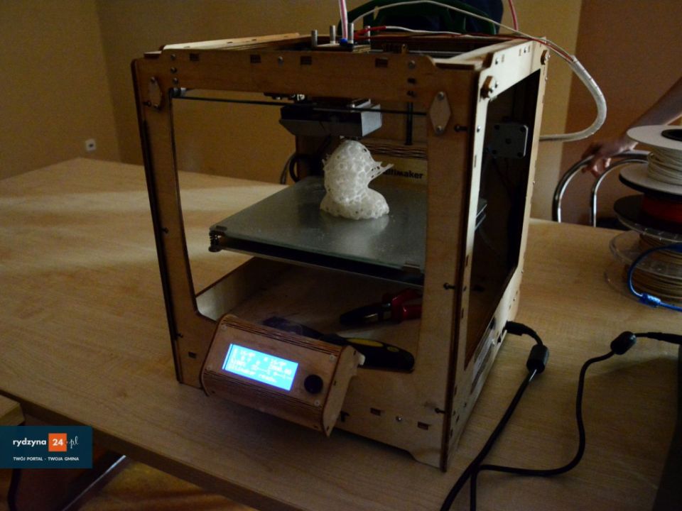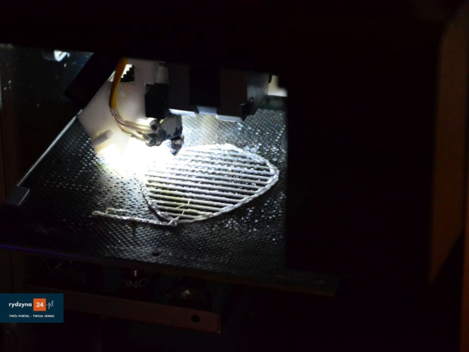 W świetlicy wiejskiej w Kłodzie trwa pokaz druku w 3D. Jak się dowiedzieliśmy, drukować można z różnych kompozytów, takich jak drewno, plastik itp.