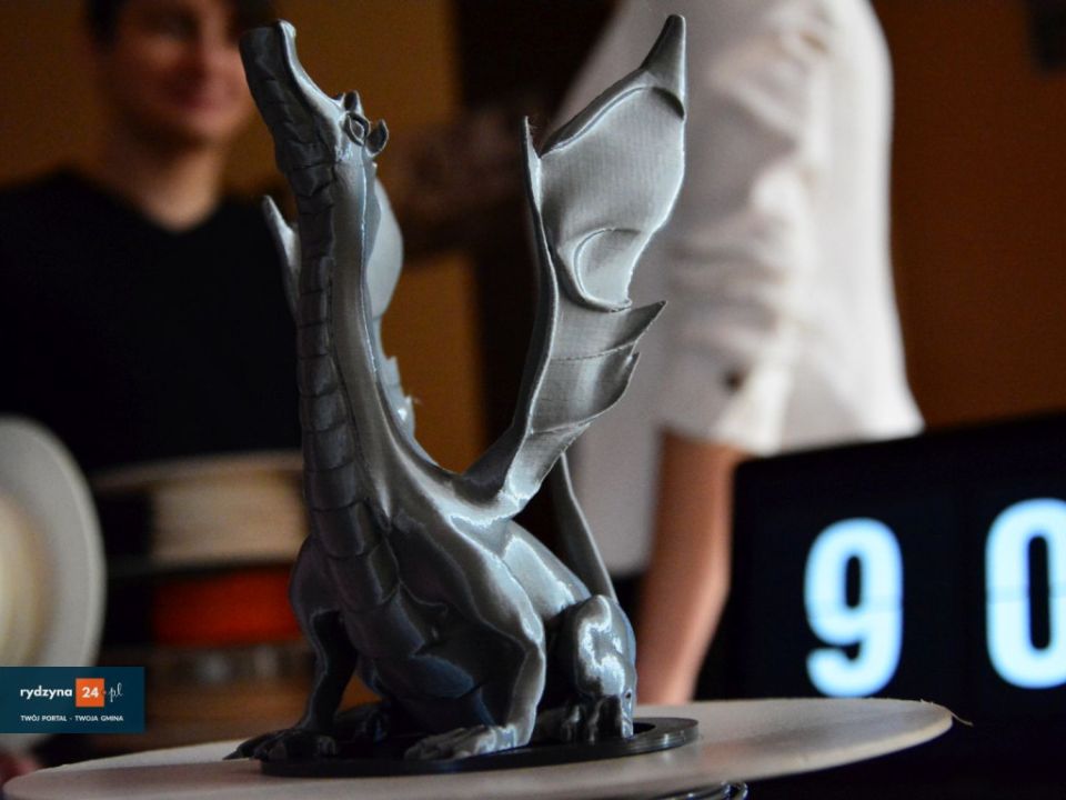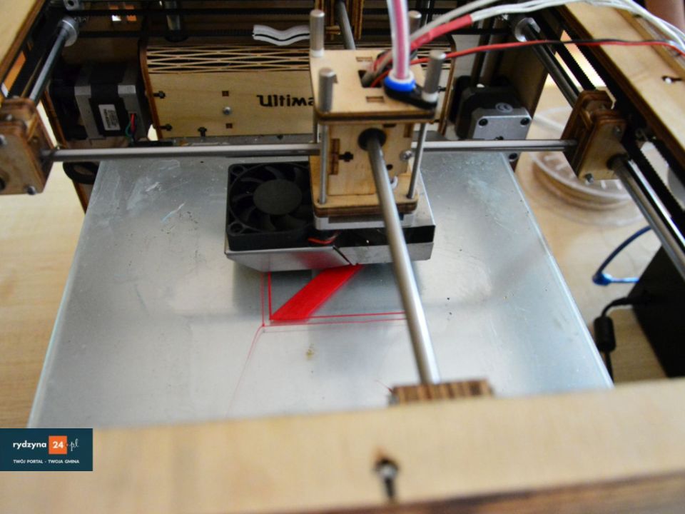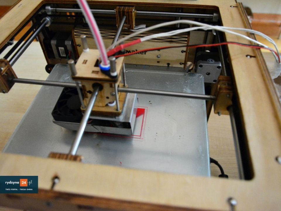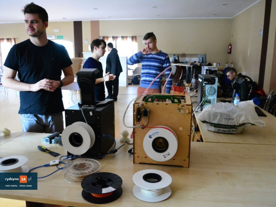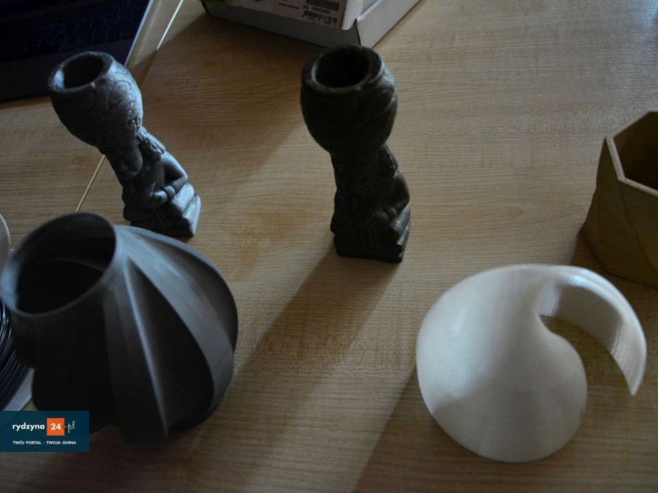 W świetlicy wiejskiej w Kłodzie trwa pokaz druku w 3D. Jak się dowiedzieliśmy, drukować można z różnych kompozytów, takich jak drewno, plastik itp.