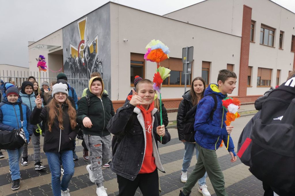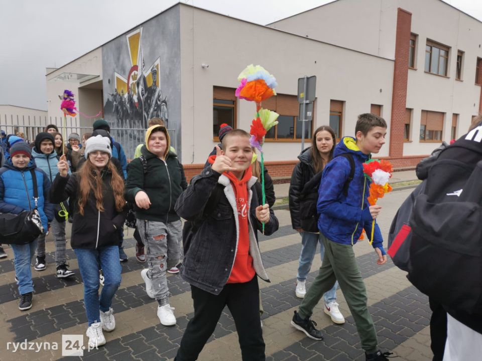 Dzisiaj w szkole podstawowej w Rydzynie zorganizowano korowód oraz symboliczne palenie Marzanny. Uczniom udało się pożegnać zimę i powitać wiosnę. Mimo nieprzewidywalnej pogody wszystko przebiegło pomyślnie. Było wesoło i kolorowo.