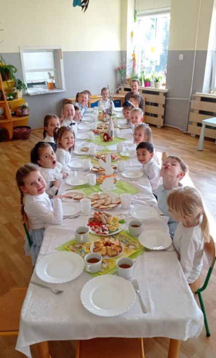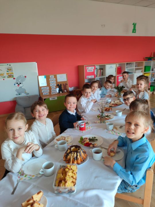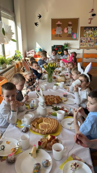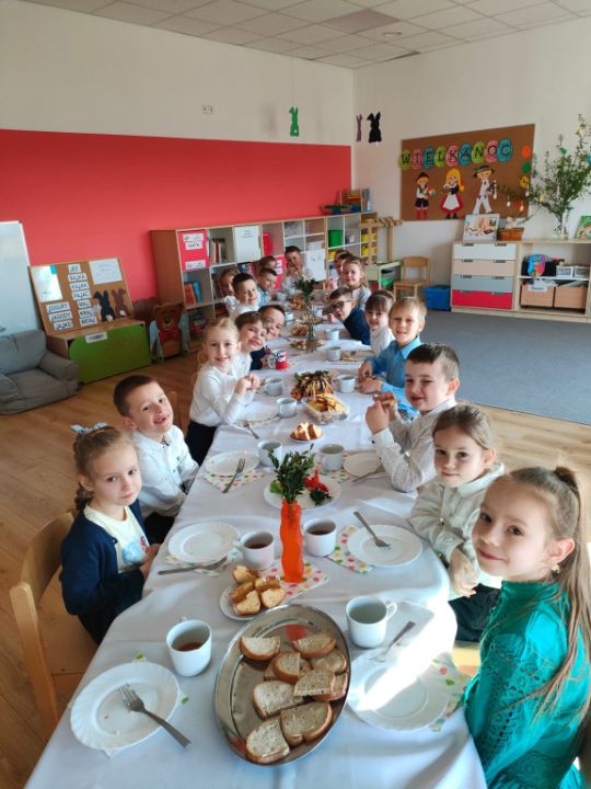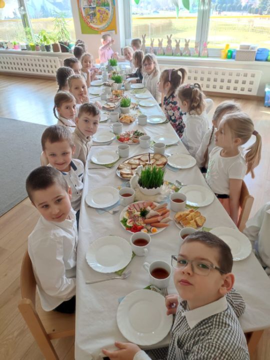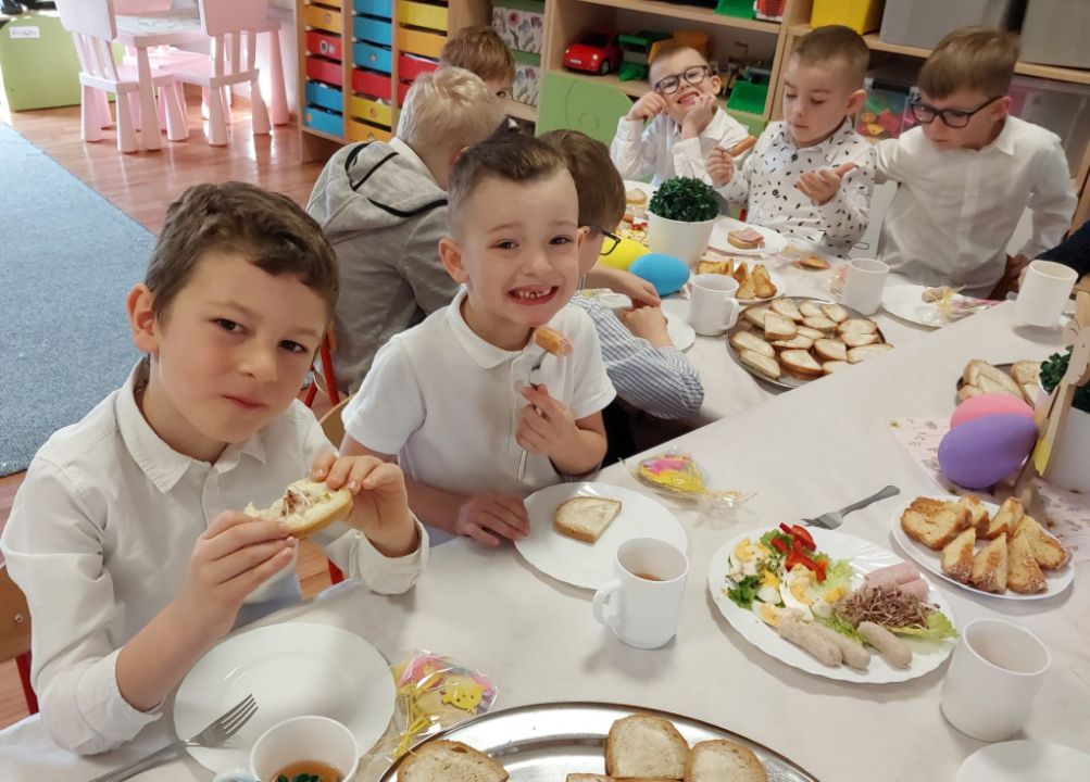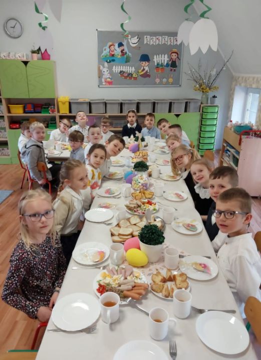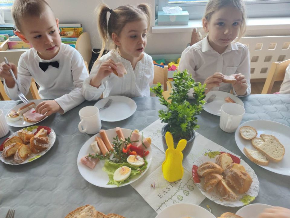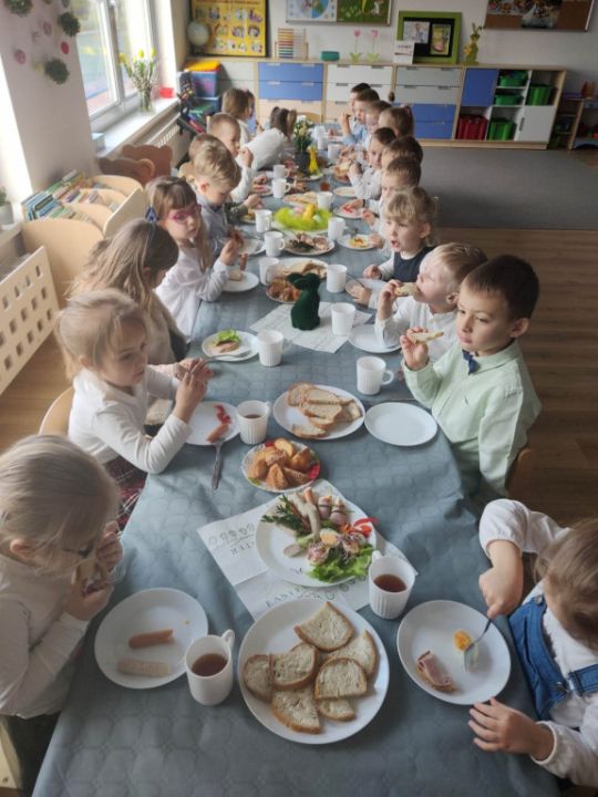 Wszystkie grupy zasiadły do wielkanocnego śniadania, składając sobie uprzednio życzenia.