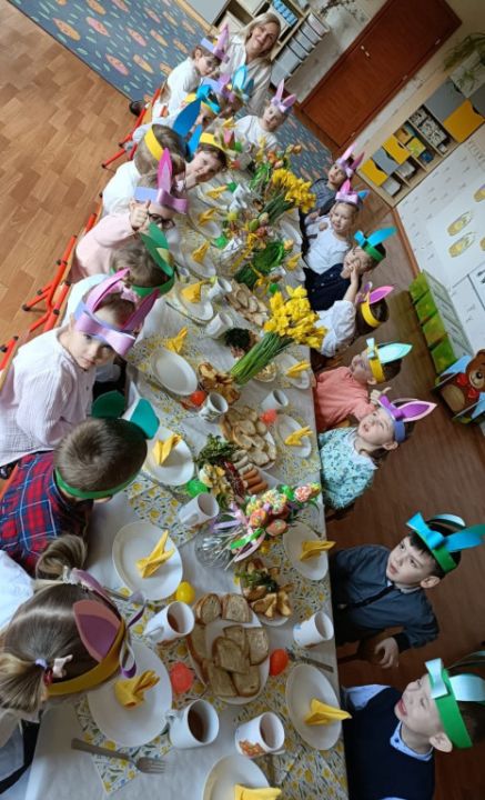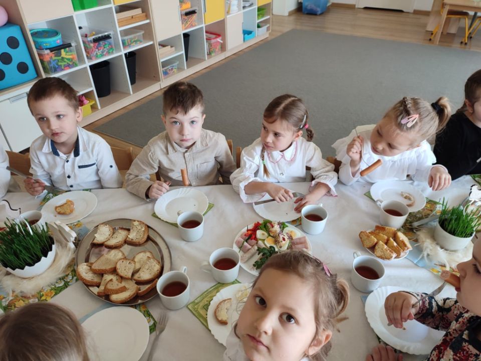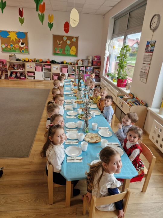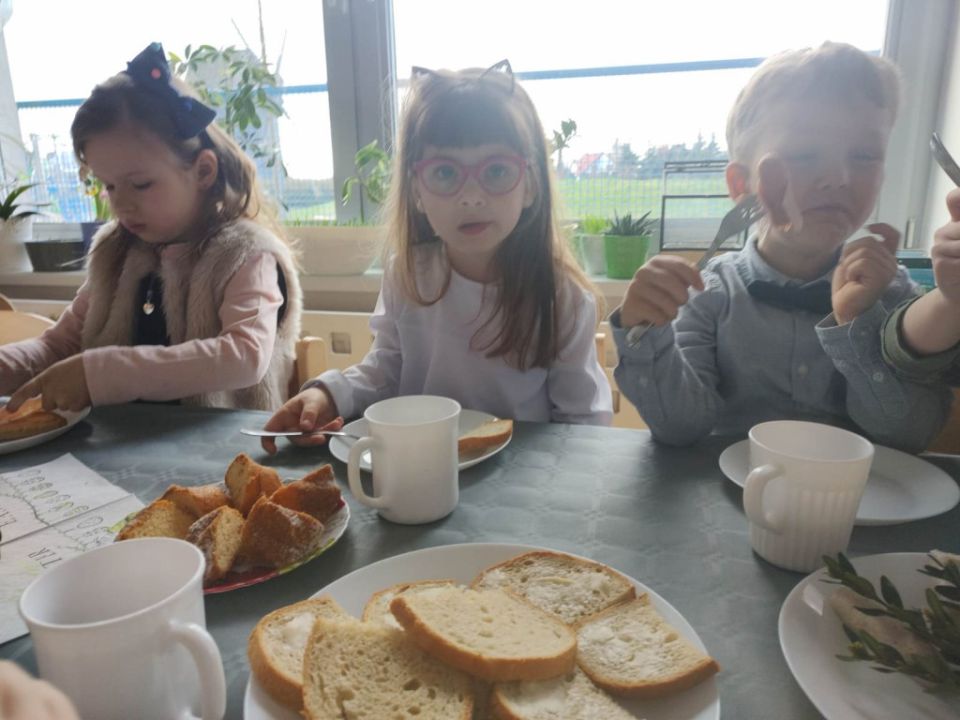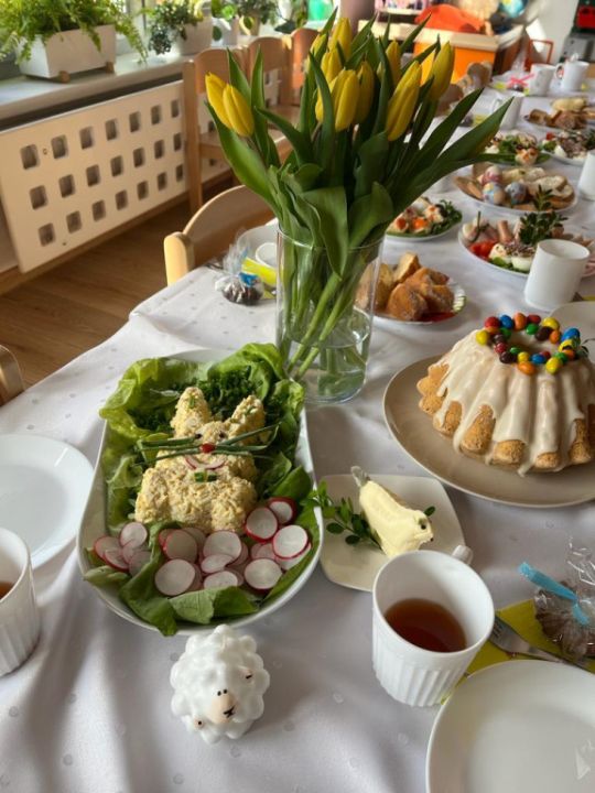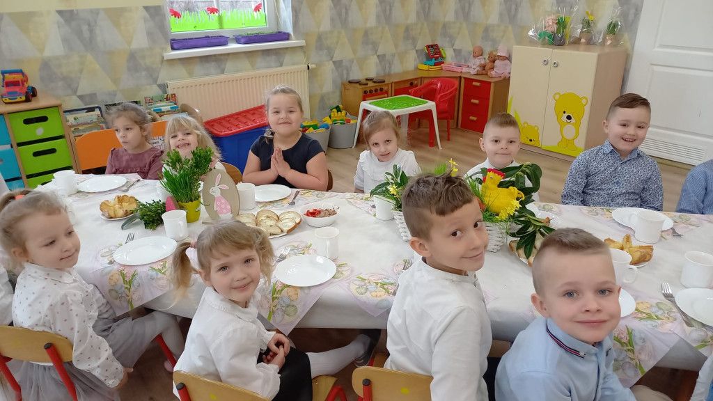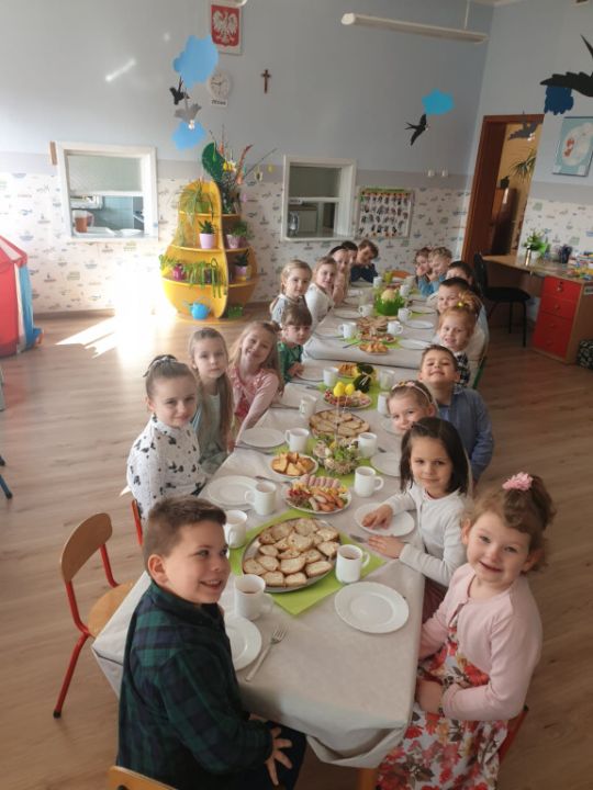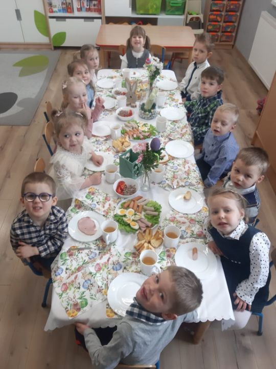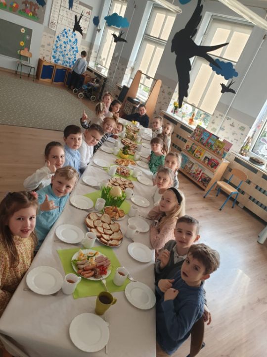 Wszystkie grupy zasiadły do wielkanocnego śniadania, składając sobie uprzednio życzenia.