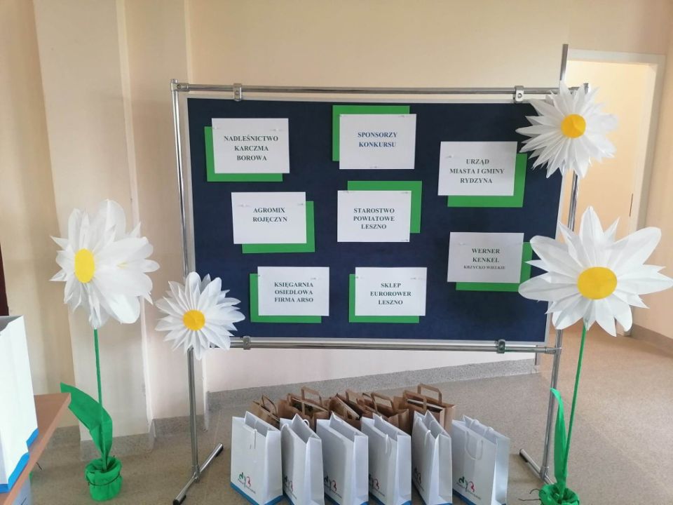 Nagrody dla uczniów ufundowali: powiat leszczyński, gmina Rydzyna, Agromix Rojęczyn, Werner Kenkel, Księgarnia Osiedlowa Leszno< Nadleśnictwo Karczma Borowa.