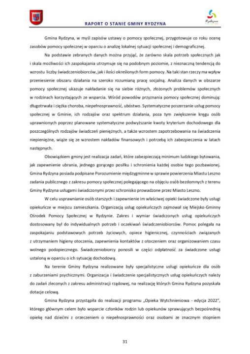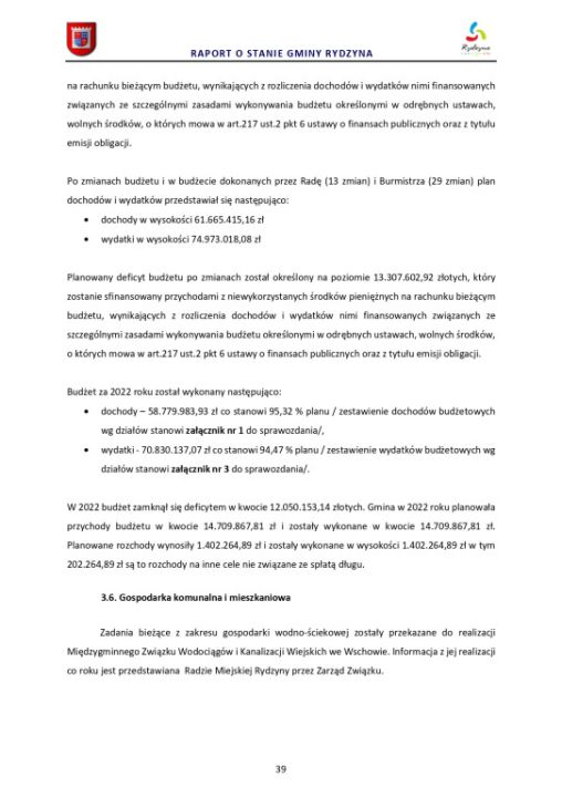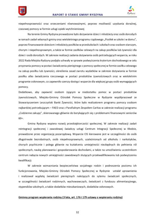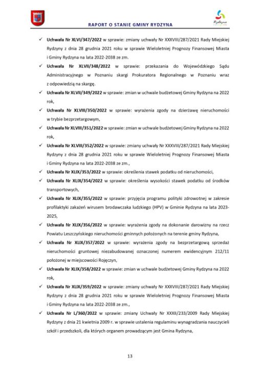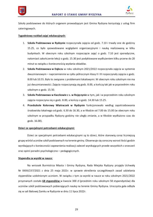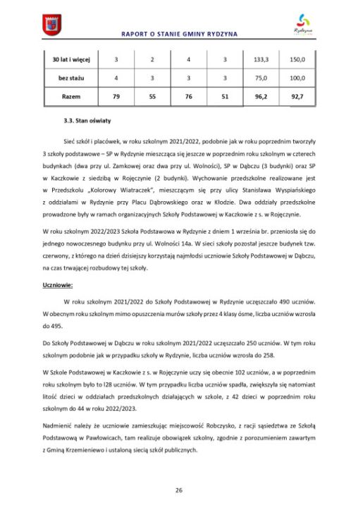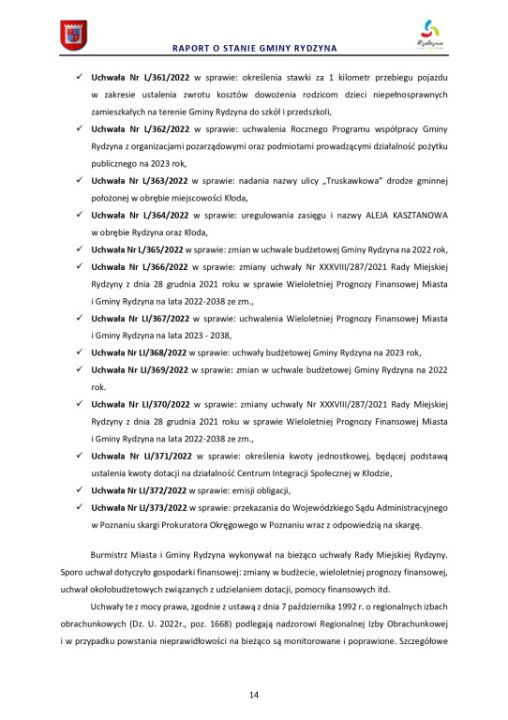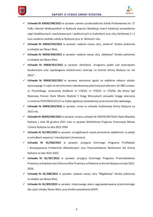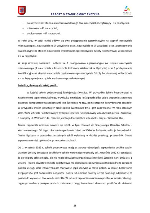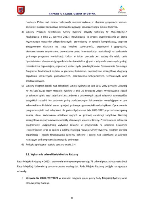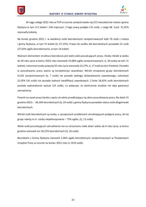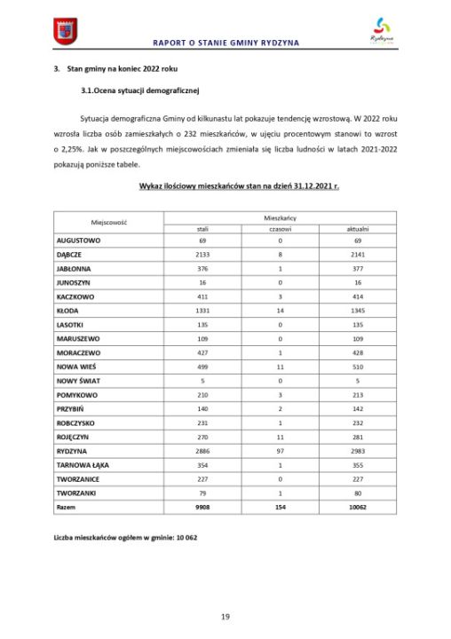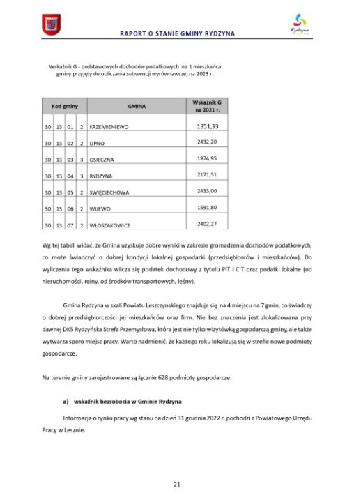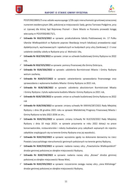 Raport o stanie Gminy Rydzyna za rok 2022