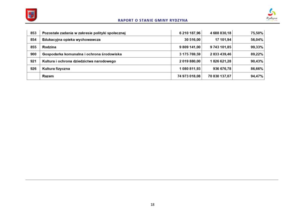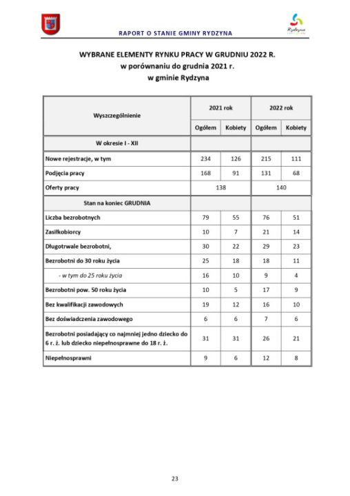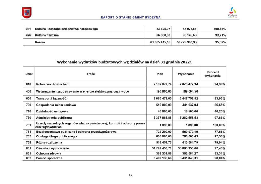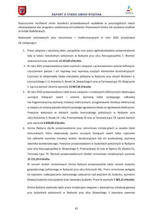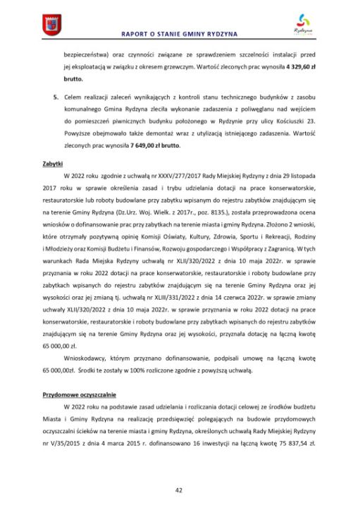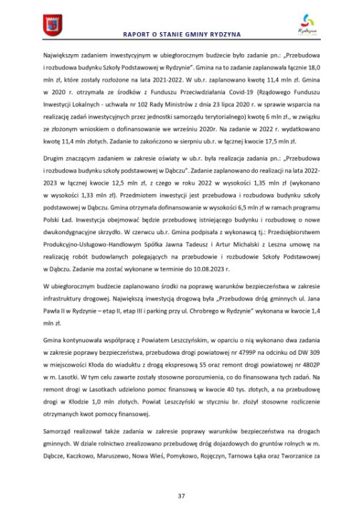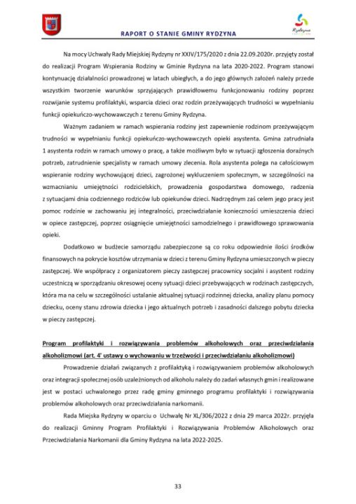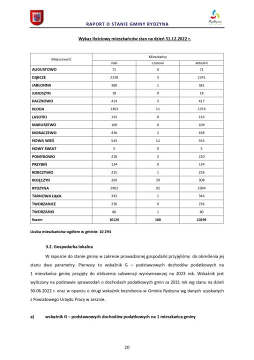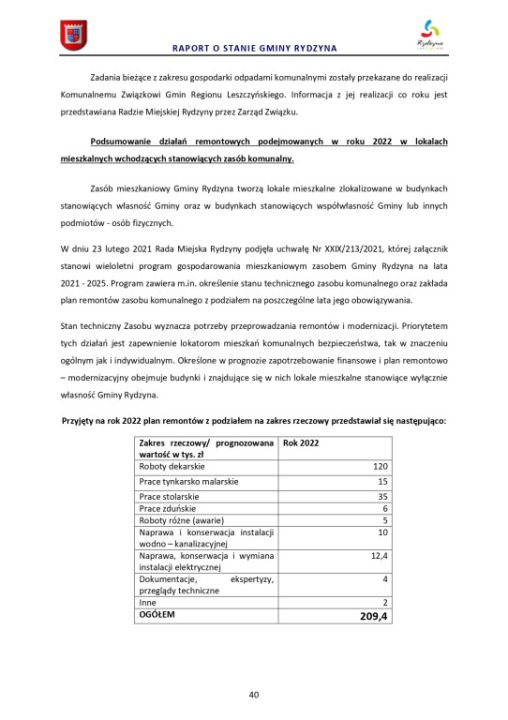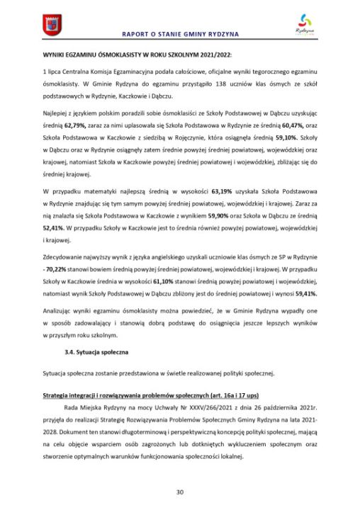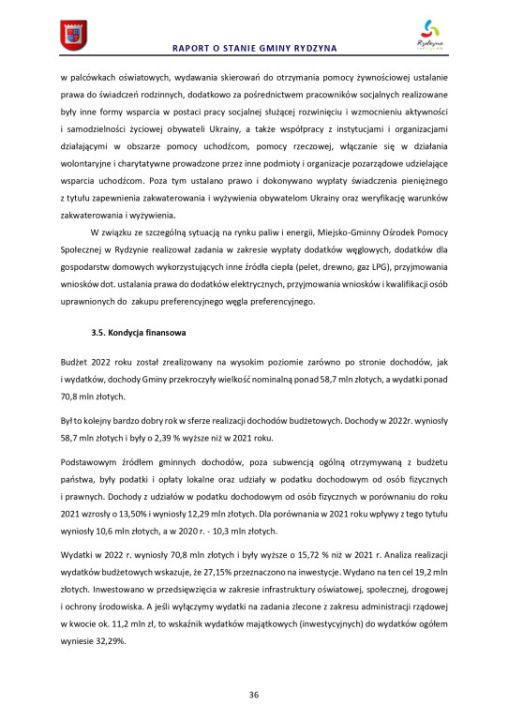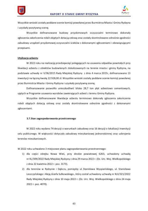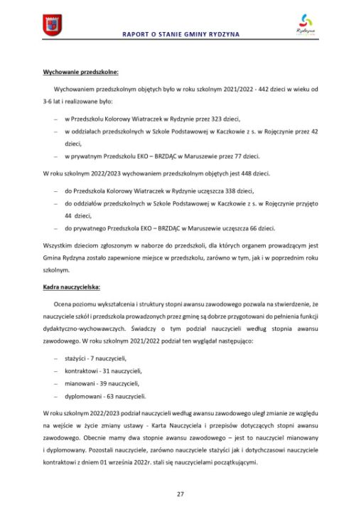 Raport o stanie Gminy Rydzyna za rok 2022
