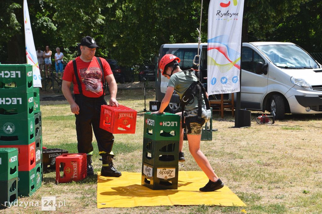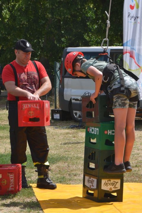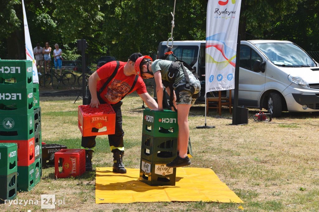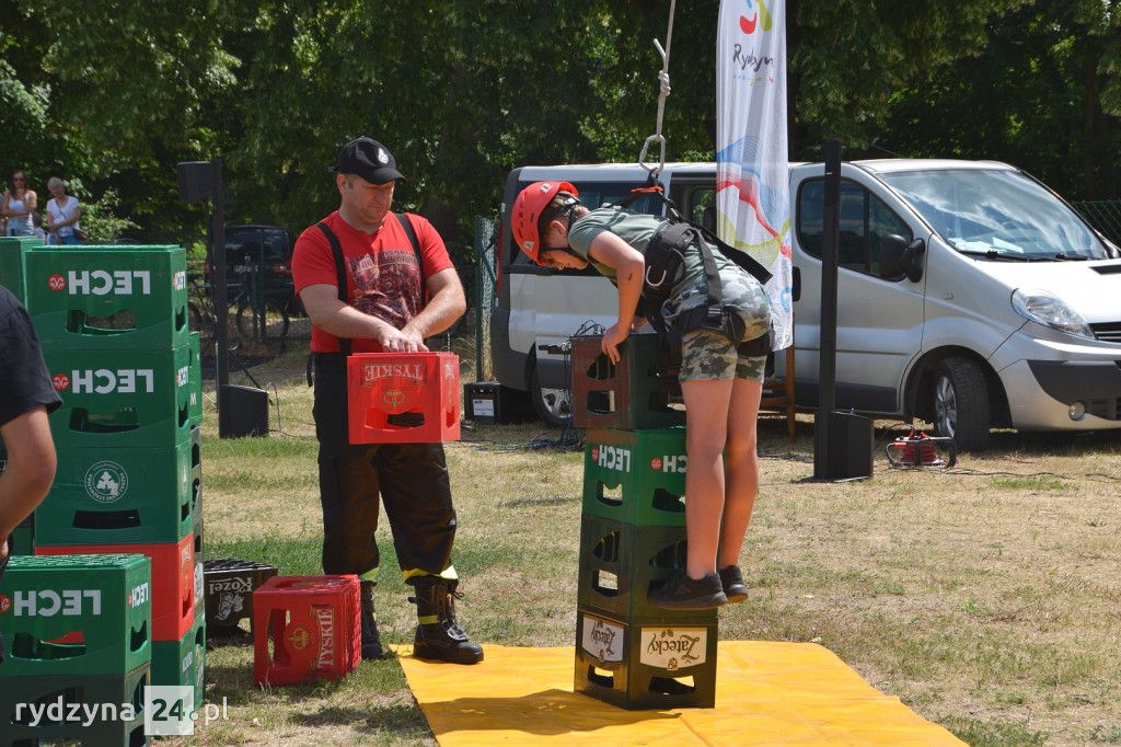 Tegoroczne zawody przyjęły formę festynu rodzinnego, na którym dla najmłodszych strażacy przygotowali wiele atrakcji. Wśród nich były dmuchańce, domek ogniowy dla dzieci, możliwość oglądania sprzętu strażackiego. Największym zainteresowaniem cieszyła się atrakcja przygotowana przez strażaków z Rydzyny. Dzieci i nie tylko mogły spróbować swoich sił podczas budowania piramidy ze skrzynek po napojach. Uczestnicy tej zabawy byli asekurowani przez strażaków uprzężą i liną zamocowaną do strażackiej drabiny.