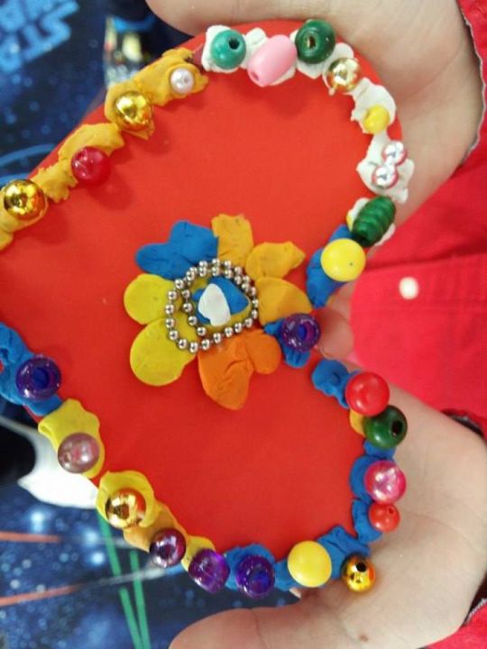 Serduszko zostało ozdobione plasteliną i kolorowymi koralikami, praca tak wciągnęła starszaków, że niektórzy wykonali kilka Walentynek.
