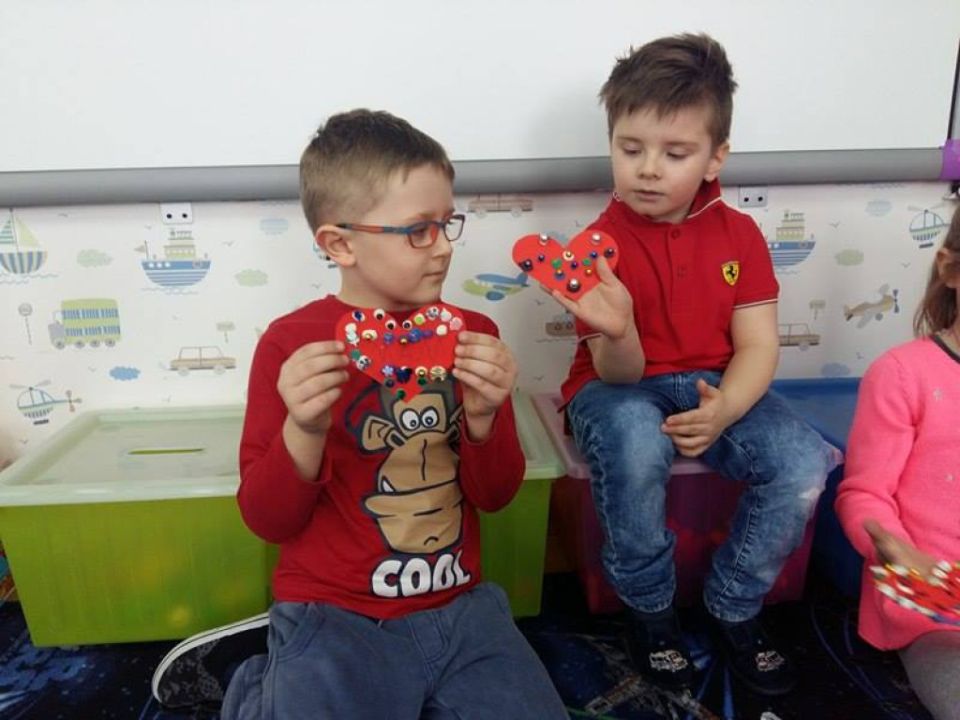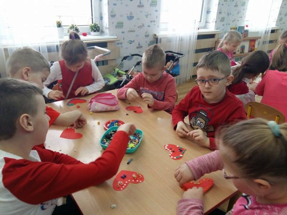 Na dzieci czekały również wesołe zabawy przy muzyce z dawnych lat oraz przy nowych przebojach. Potem każdy przedszkolak wykonał przepiękną Walentynkę dla mamusi, tatusia lub kogoś bliskiego.