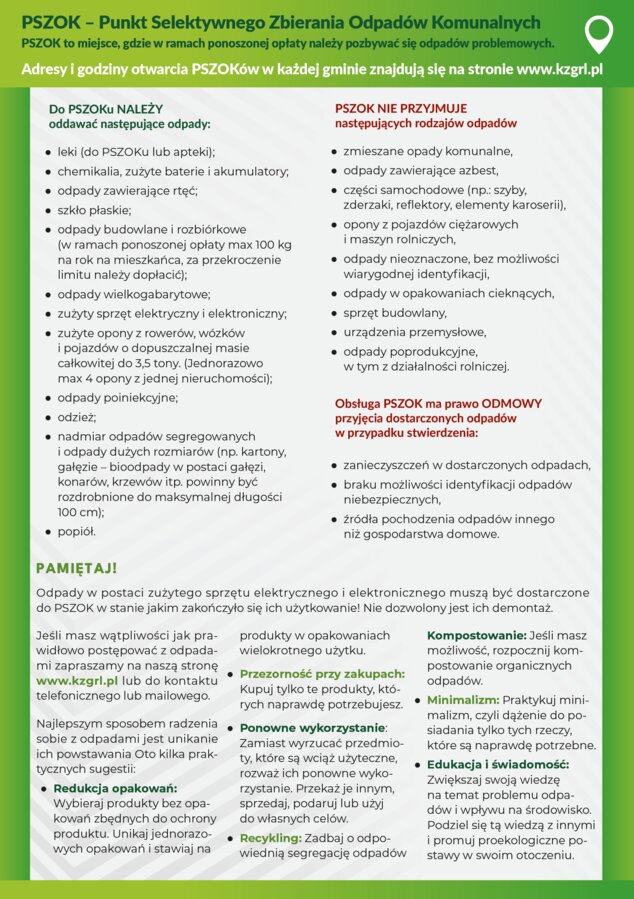 PSZOK – zaktualizowaliśmy informacje dotyczące zasad pozbywania się odpadów komunalnych za pośrednictwem Punktów Selektywnego Zbierania Odpadów Komunalnych!