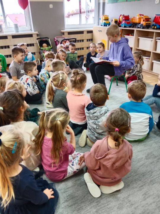 Absolwenci przedszkola w Rydzynie czytają młodszym kolegom