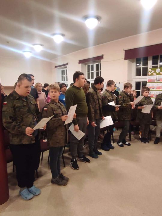 27 listopada w auli SOSW w Rydzynie odbyło się Spotkanie z pieśnią patriotyczną. Wydarzenie to zamknęło wszystkie obchody związane ze Świętem Odzyskania Niepodległości w Ośrodku. Wychowankowie grup w skupieniu, zadumie, chwilami z powagą słuchali i śpiewali znane i lubiane pieśni patriotyczne.