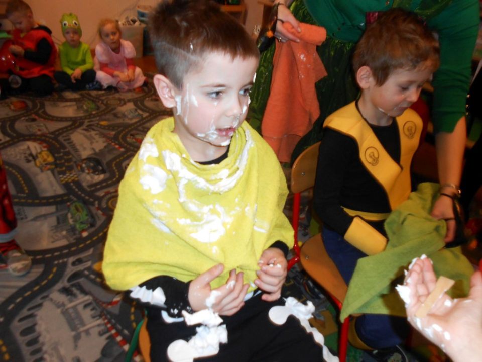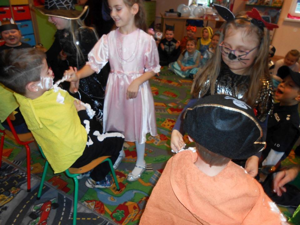 Bogaty program zabaw i konkursów sprawił, iż żadne dziecko się nie nudziło, a zabawa dostarczyła wiele wrażeń i wielu innych. Wiele śmiechu było podczas wiązania krawata, golenia, pokazu mody karnawałowej, robienia fryzur. W przerwach zabawę umilał słodki poczęstunek, a wspólna zabawa przy muzyce pozwoliła bardziej zintegrować środowisko przedszkolne. Serdecznie dziękujemy rodzicom za przygotowanie ciekawych kostiumów dla dzieci.