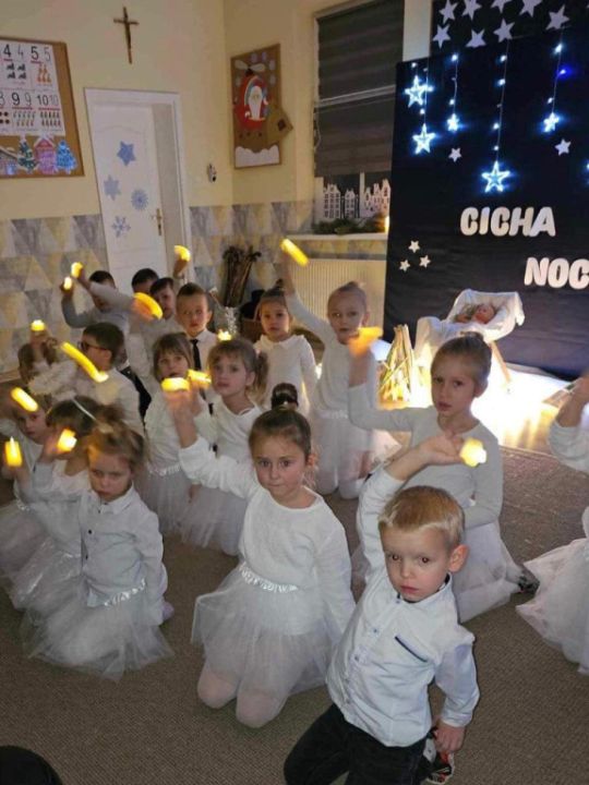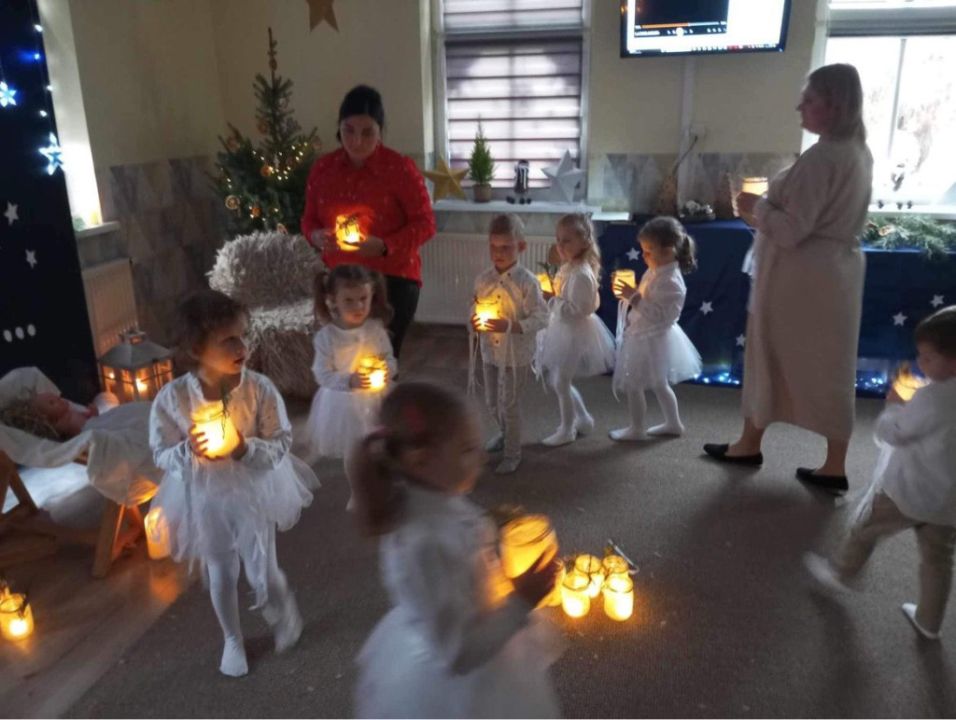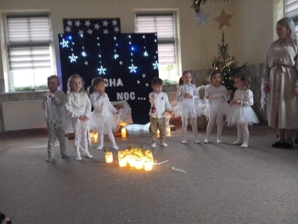 W Przedszkolu Kolorowy Wiatraczek w Rydzynie odbywały się w ostatnim tygodniu przed świętami przepiękne przedstawienia gwiazdkowe. Podczas wszystkich tych uroczystości obecni byli rodzice przedszkolaków, którzy przy pięknie udekorowanych i zastawionych pierniczkami i ciastem stołach, wspólnie z dziećmi przeżywali ten magiczny, przedświąteczny czas. Wszystkie spotkania były wyjątkowe i wzruszające. Magiczne i wyjątkowe były też scenografie i dekoracje przygotowane przez nauczycielki i pracowników przedszkola, które stworzyły piękny, wręcz magiczny świąteczny klimat.