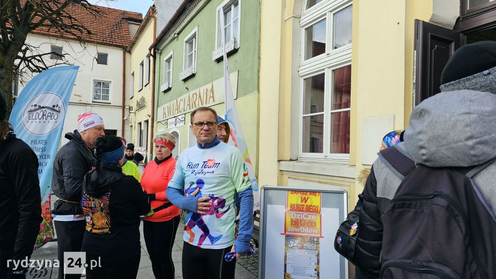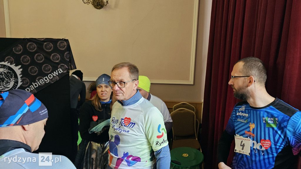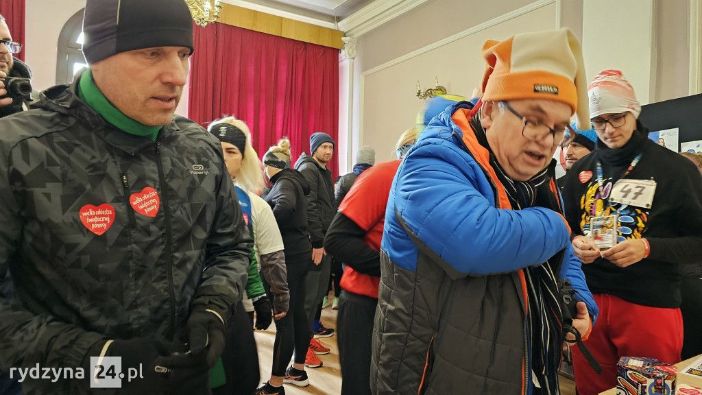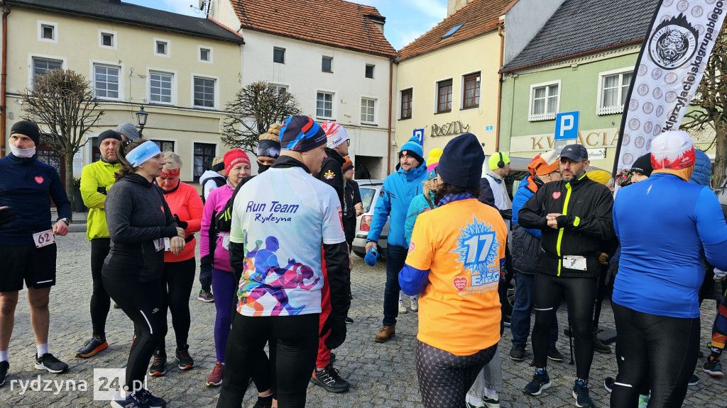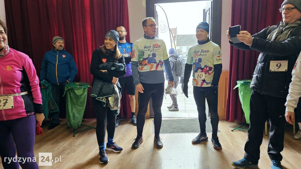Biegacze i kijkarze spotkali się na rydzyńskim rynku, skąd wystartowali o godzinie 11:00. Do wyboru były dwa dystanse 5,5 i 7,5 km. Organizatorem biegu Charytatywny Bieg dla WOŚP jest Sławomir Zygner, szef sztabu rydzyńskiego, oraz LEŚNE DZIKI Przyjacielska Grupa Biegowa. Zebrano kwotę 2780zł
