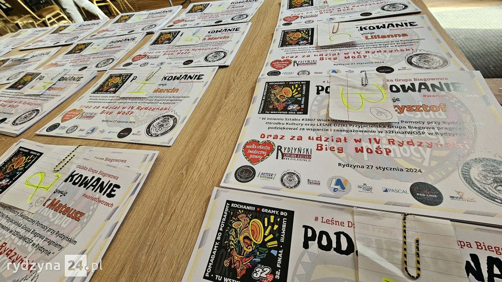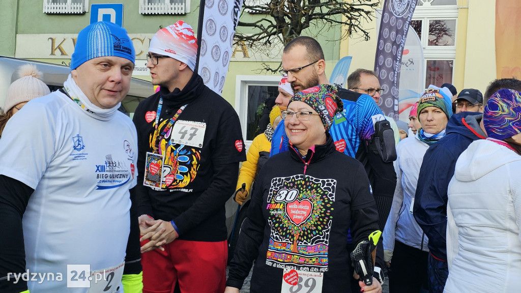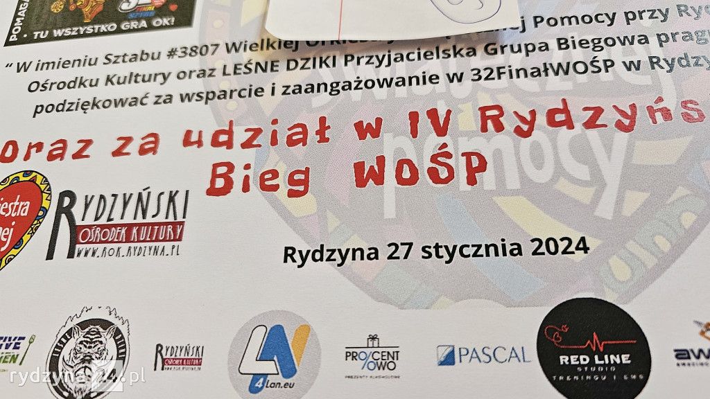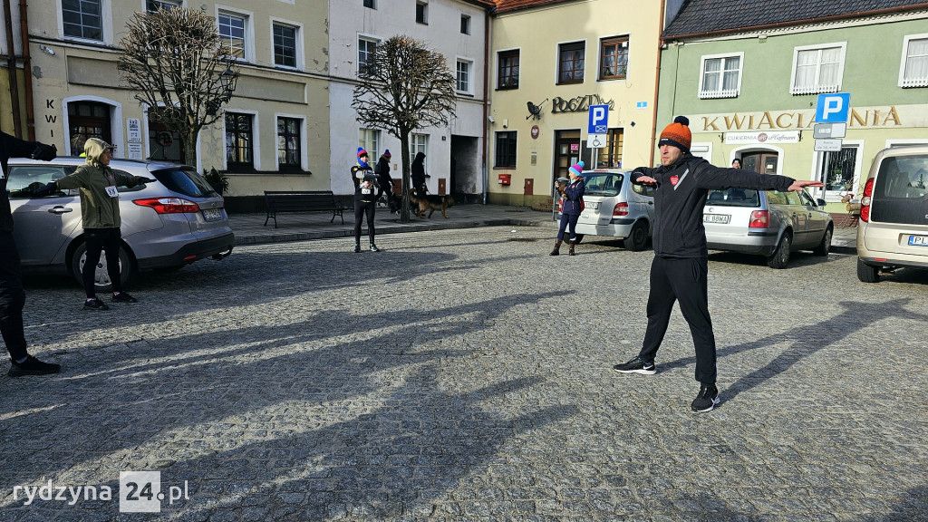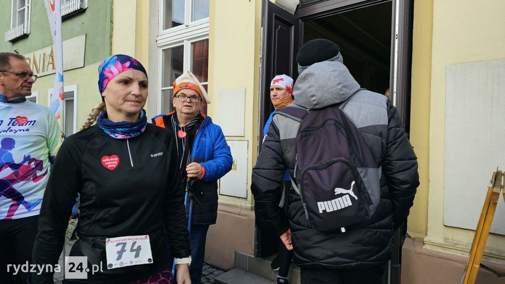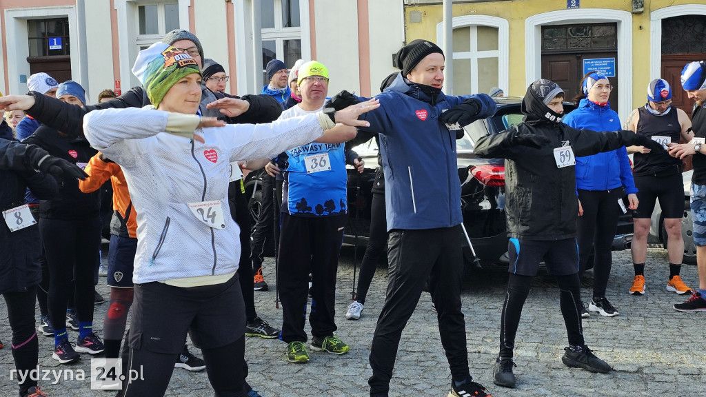Biegacze i kijkarze spotkali się na rydzyńskim rynku, skąd wystartowali o godzinie 11:00. Do wyboru były dwa dystanse 5,5 i 7,5 km. Organizatorem biegu Charytatywny Bieg dla WOŚP jest Sławomir Zygner, szef sztabu rydzyńskiego, oraz LEŚNE DZIKI Przyjacielska Grupa Biegowa. Zebrano kwotę 2780zł