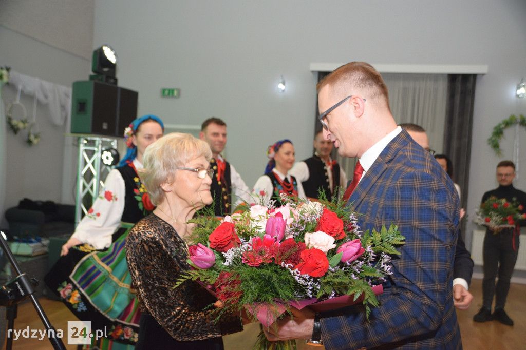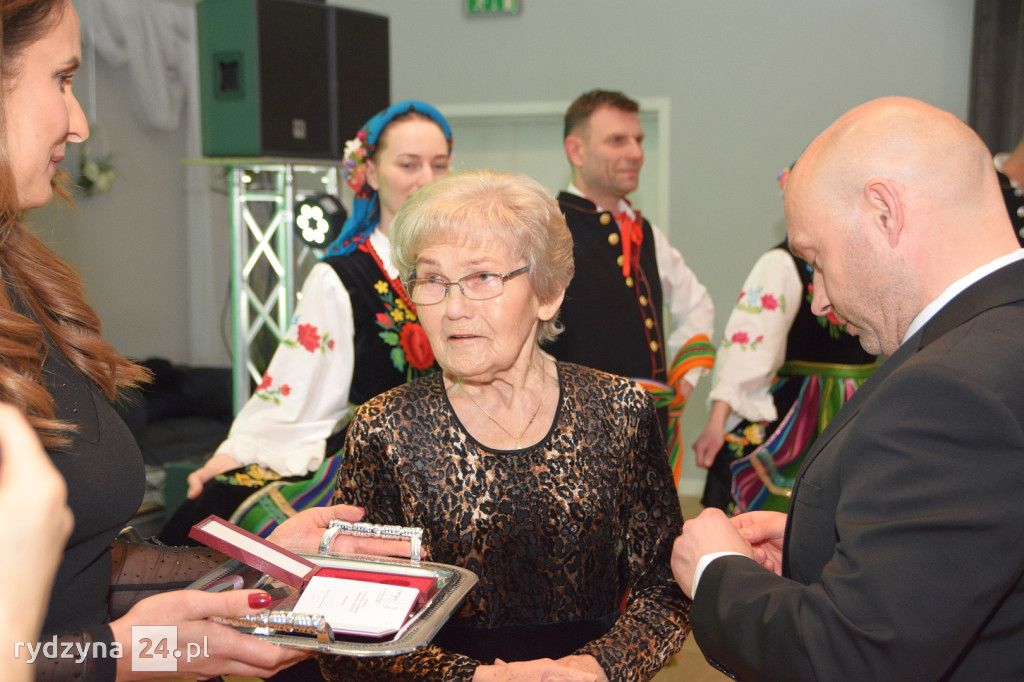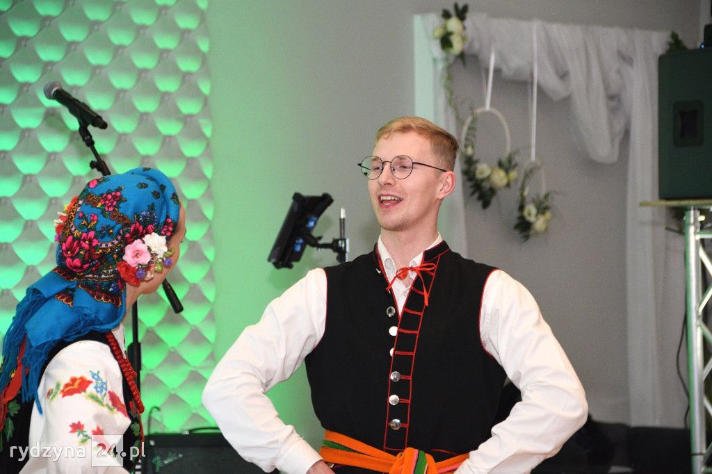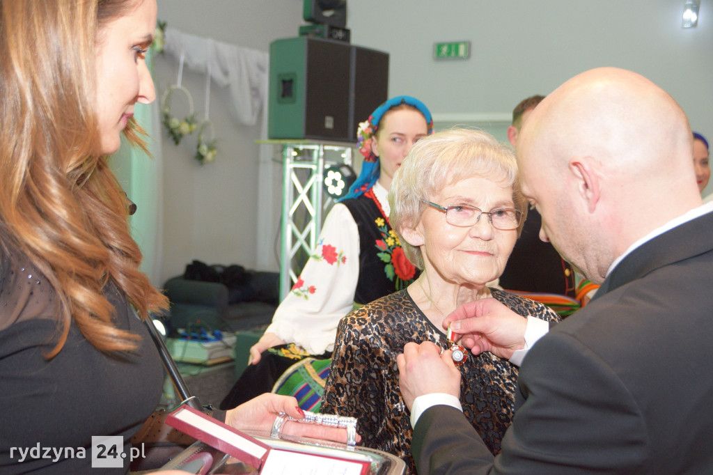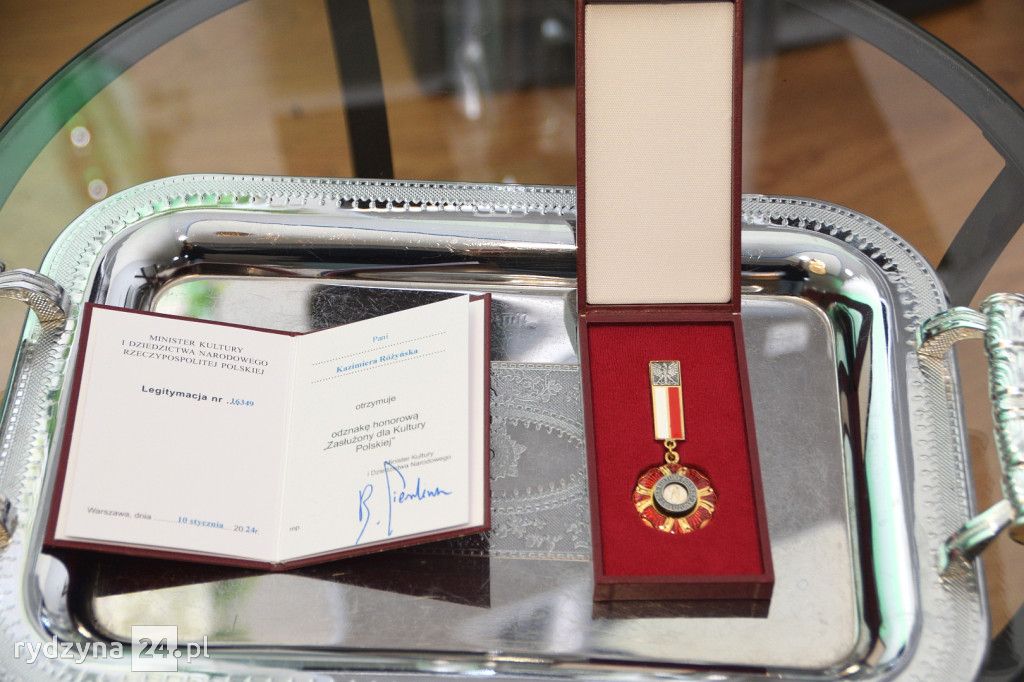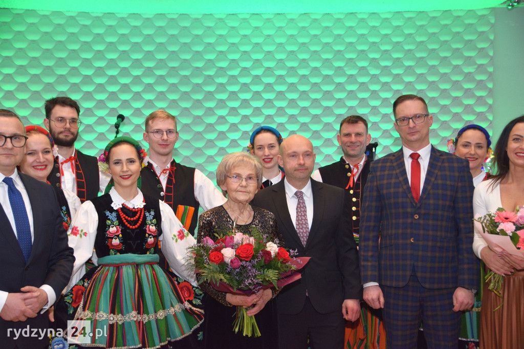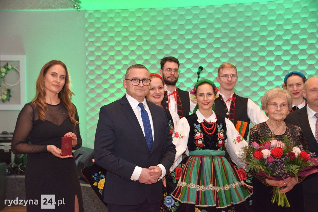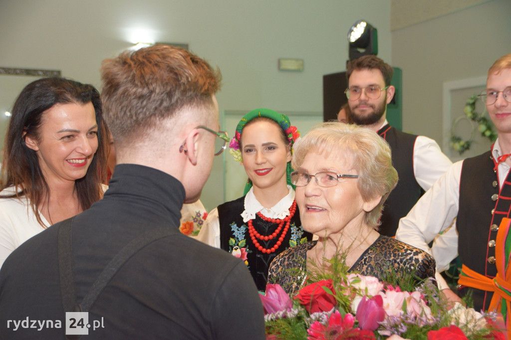 Gości powitała dyrektorka Rydzyńskiego Ośrodka Kultury, otwierając tym samym serię wyjątkowych momentów. Najpierw, Pani Kazimiera Różyńska została uhonorowana odznaką "Zasłużony dla Kultury Polskiej", nadaną przez samego Ministra Kultury i Dziedzictwa Narodowego. To wyjątkowe wyróżnienie podkreśliło nieoceniony wkład Pani Kazimiery w rozwój kultury i tradycji polskiej.