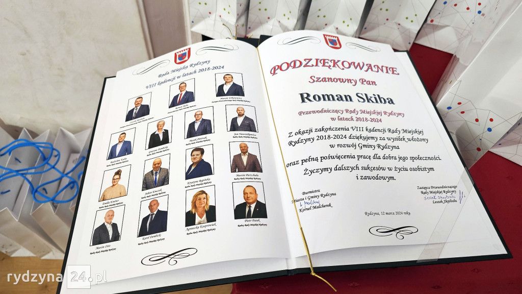 W pierwszych dniach marca przewodniczący Rady Miejskiej Rydzyny, Roman Skiba, zwołał 63. i zarazem ostatnią sesję tego ciała przed zakończeniem kadencji. W trakcie ponad pięcioletniej pracy, od 2018 do 2024 roku, radni podejmowali 464 uchwały, co stanowi znaczący wkład w rozwój lokalnej społeczności.